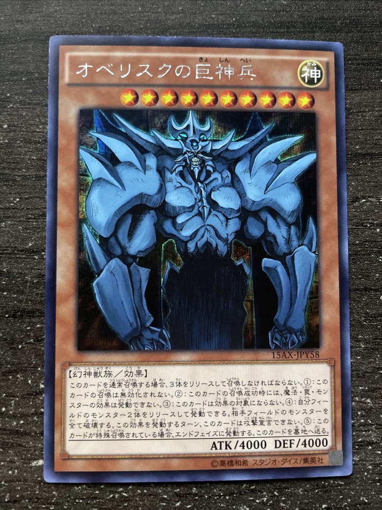 CARTE YU-GI-OH! OBELISK THE TORMENTOR 15AX-JPY58 MILLENIUM RARE JAPANESE NM.