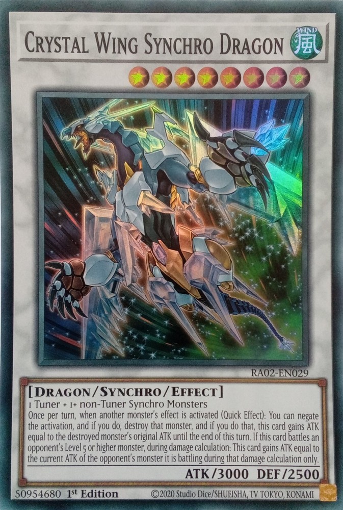 RA02-EN029 CRYSTAL WING SYNCHRO DRAGON SUPER RARE ALL YU-GI-OH CARDS I SELL ARE KONAMI TOURNAMENT LEGAL. CARDS ARE ALL BRAND NEW AND IN MINT CONDITION. POSTAGE IS FREE SO YOU CAN BUY AS MANY CARDS AS YOU WANT FROM US AND NOT PAY A PENNY POSTAGE. IF YOU HAVE ANY QUESTIONS PLEASE FEEL FREE TO CONTACT ME. Track Page Views With Auctiva's FREE Counter