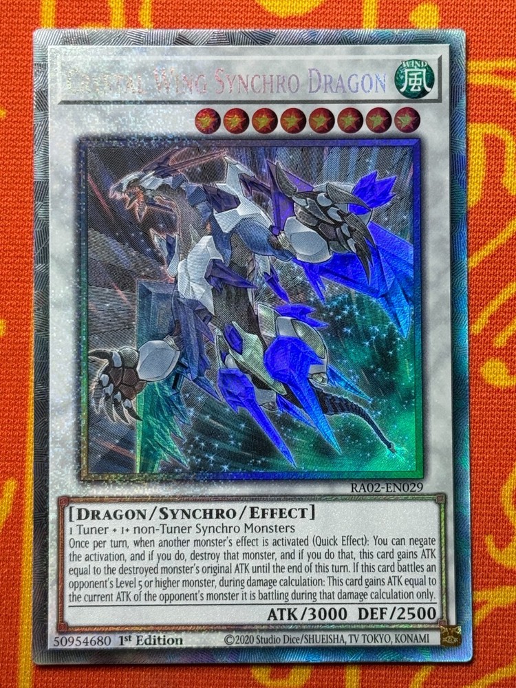Collectors Crystal Wing in Near Mint condition. We refrain from listing cards as mint as sometimes the most minor wear goes unnoticed . All cards will be dispatched within two working days and come well-packaged in a toploader to avoid any damage in the post. Postage is completely free on all of our items. Please note that each listing is for 1 copy of the card(s) stated in the title unless otherwise specified; pictures are sometimes taken of every available copy to give you a better idea of the condition. Please feel free to send us a message with any questions you may have regarding an item, and happy bidding! Condition Grading Scale: Near Mint/NM - No notable wear or damage. Excellent/EX - Might have slightly more wear/whitening than normal, or a faint crease/scratch/dent. Light Play/LP - Multiple marks/scuffing and/or multiple light creases/scratches, etc. Heavy Play/HP - Heavily used. Will have combinations of edgewear, multiple marks and creases, etc. For most items below near mint condition, additional photographs will be provided to further detail the extent of any wear or damage. We regret that requests for photographs of cards on specific backgrounds or lighting are not possible.