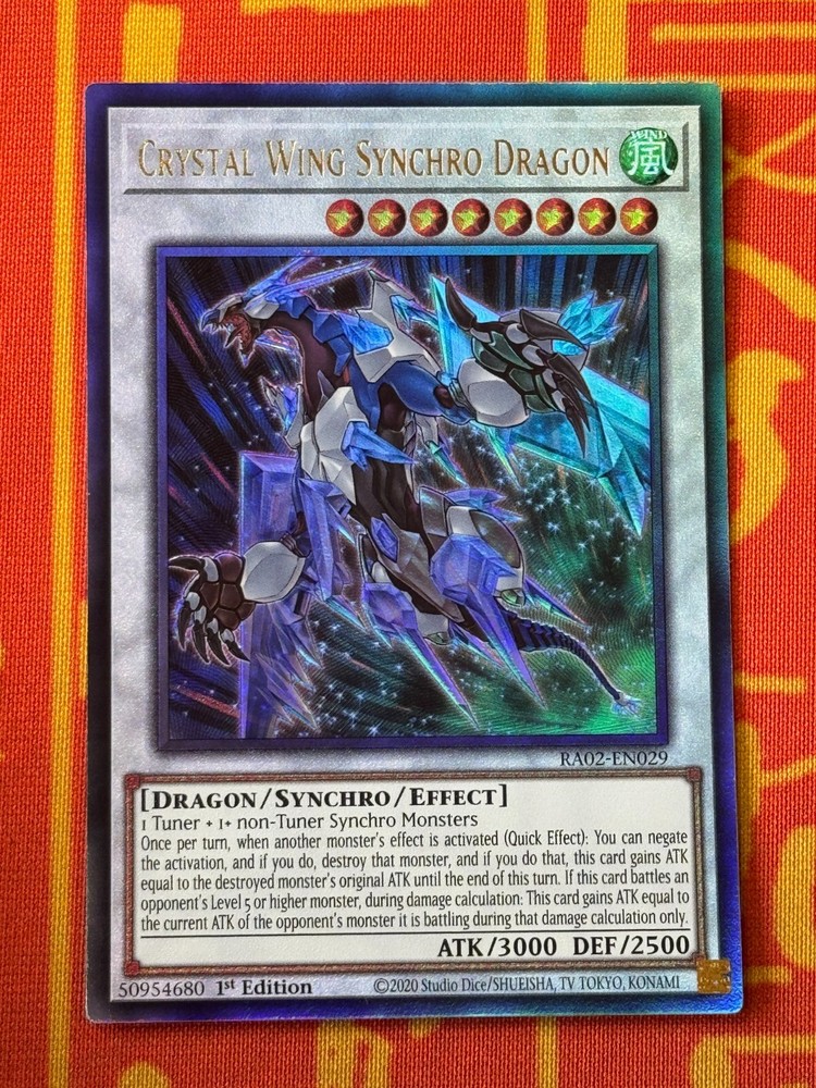 Ultimate Crystal Wing in Near Mint condition. We refrain from listing cards as mint as sometimes the most minor wear goes unnoticed . All cards will be dispatched within two working days and come well-packaged in a toploader to avoid any damage in the post. Postage is completely free on all of our items. Please note that each listing is for 1 copy of the card(s) stated in the title unless otherwise specified; pictures are sometimes taken of every available copy to give you a better idea of the condition. Please feel free to send us a message with any questions you may have regarding an item, and happy bidding! Condition Grading Scale: Near Mint/NM - No notable wear or damage. Excellent/EX - Might have slightly more wear/whitening than normal, or a faint crease/scratch/dent. Light Play/LP - Multiple marks/scuffing and/or multiple light creases/scratches, etc. Heavy Play/HP - Heavily used. Will have combinations of edgewear, multiple marks and creases, etc. For most items below near mint condition, additional photographs will be provided to further detail the extent of any wear or damage. We regret that requests for photographs of cards on specific backgrounds or lighting are not possible.