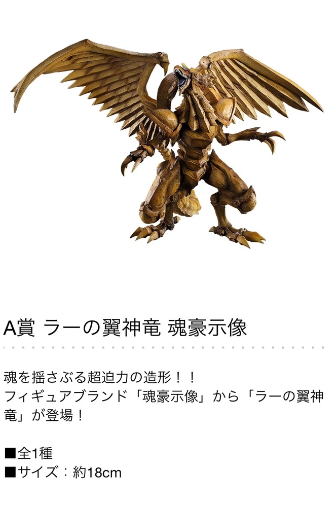 YU-GI-OH GX Winged Dragon of Ra Ichiban Kuji God Monsters Figure BANDAI A NEW Description Thank you for visiting this page. Please check the photos for the product details. If you have any concerns, please contact us. Appearance and Condition NEW Payment Handling time 10 days after payment Shipping We ship using FedEx, DHL, Japan Post. We always send the item with a tracking number. So please place an order without any concern on delivery. You can always track the delivery status. Shipping is only available to the address registered in eBay. If you want us to send another address, please change your address on eBay and then place an order. Shipping is available from Monday to Friday. Weekends are not available because freight (shipping) companies are closed. We do not mark merchandise values below value or mark items as “gifts” – Japan, US and International government regulations prohibit such behavior. About Importer's Obligation Import duties, taxes, and charges are not included in the item price or shipping cost. These charges are the buyer's responsibility. Please check with your country's customs office to determine what these additional costs will be prior to bidding or buying. Thank you for your understanding.