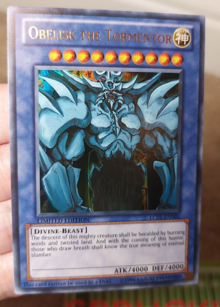 YUGIOH TCG OBELISK THE TORMENTOR LIMITED EDITION HOLO CARD # LC01-EN001 CONDITION CAN BE SEEN IN PHOTOS CARD COMES IN TOP LOADER