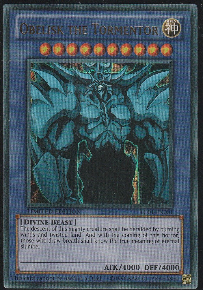 A VENDRE 1 CARTE YU-GI-OH OBELISK THE TORMENTOR LC01-EN001 - VERSION ANGLAISE ULTRA RARE carte neuve livraison en lettre SUIVIE SLEEVE OFFERTE MERCI POUR VOTRE VISITE...