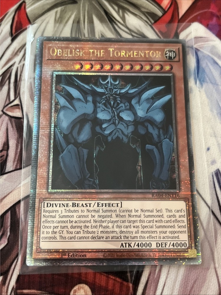 This Yugioh Obelisk the Tormentor Quarter Century Secret Rare is an incredible addition to any collector’s deck. The card arrived exactly as described—near mint with flawless edges and vibrant colors. Shipping was super fast, and the free, secure packaging in a toploader kept it protected. The seller is super reliable, providing clear photos and honest condition descriptions. If you’re aiming to add this powerhouse to your collection, this is the perfect purchase with no surprises—just pure gaming excellence!