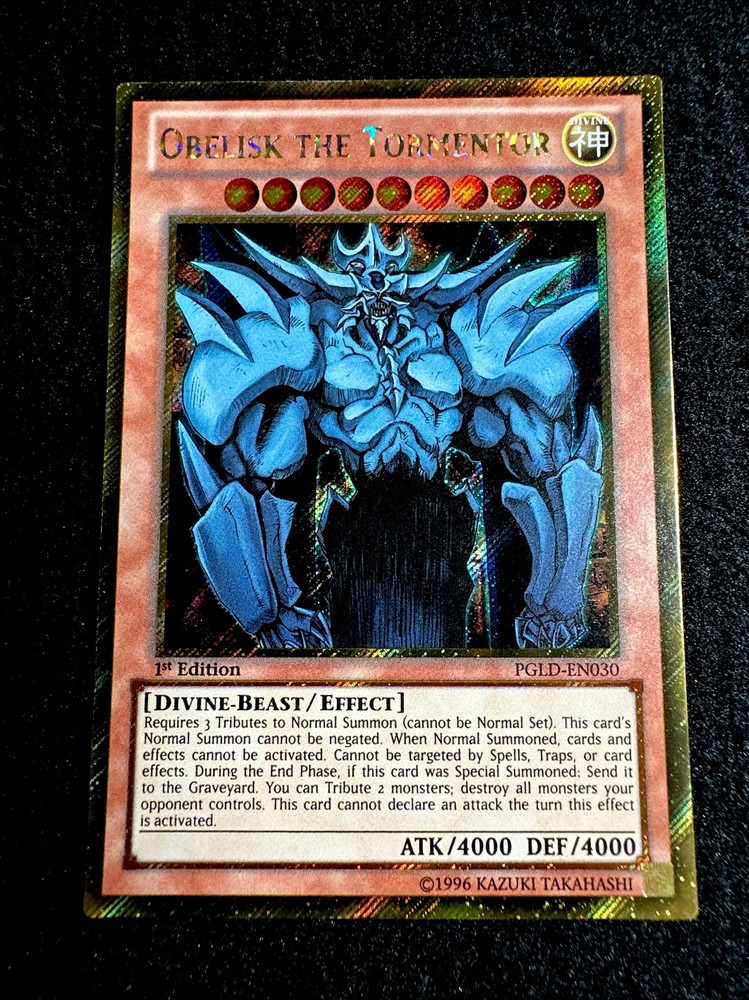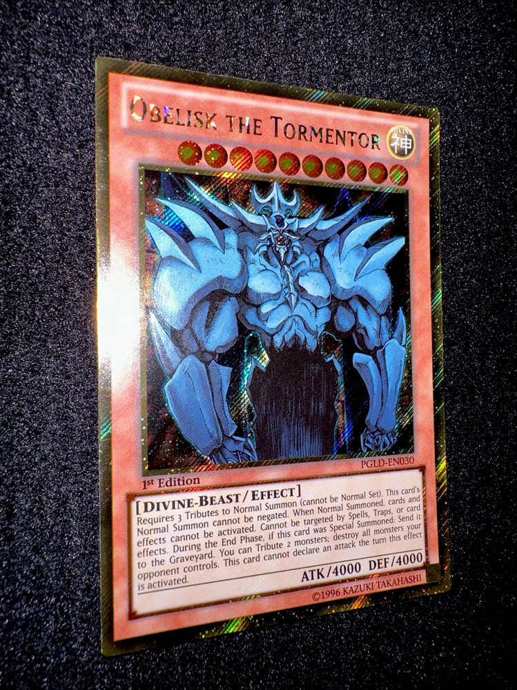 Absolutely thrilled with this amazing Obelisk the Tormentor card! The Secret Rare foil looks stunning, and the 1st Edition makes it extra special. The condition is flawless—just as described. A must-have for any Yu-Gi-Oh! collector or fan of the Egyptian God cards. Packaged securely and arrived quickly. Highly recommend this powerful Divine-Beast for your deck!