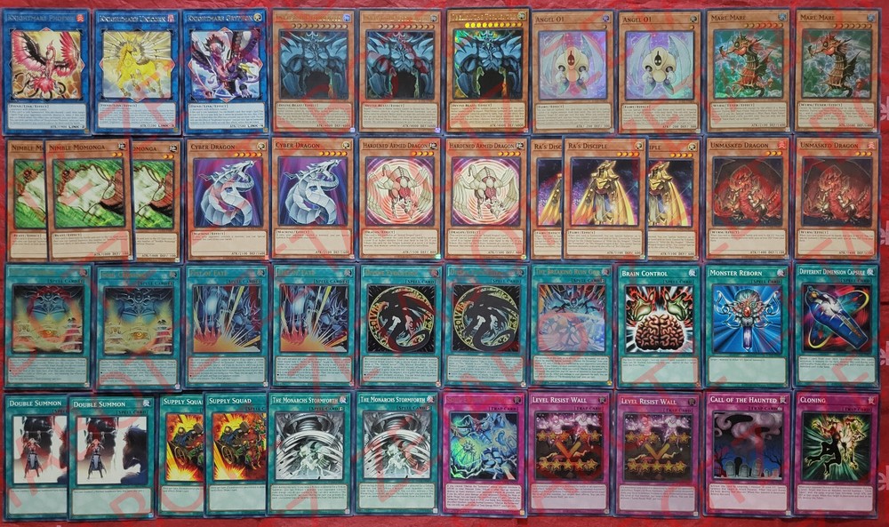 Description You are purchasing one Obelisk the Tormentor deck, includes all 43 cards shown in displayed images. See below for the complete deck list. Unless stated otherwise, all cards are mint/near mint condition. Shipping Unless stated otherwise, free shipping. All cards are shipped in a bubble mailer. All items are shipped within 24 hours (1 business day). Weekends do not count as business days. All orders made on Fridays after 8AM EST and weekends will be shipped on the following Monday, excluding holidays. International Shipping Only ship to eligible countries under the GSP (Global Shipping Program). Buyers are responsible for all international shipping fees. For more information, go to this link [http://pages.ebay.com/help/buy/shipping-globally.html] Returns (DOES NOT APPLY TO OPENED FACTORY SEALED PRODUCTS) 14 days money back, buyer pays return shipping, 20% restocking fee will be charged Monsters:19 3 Obelisk the Tormentor 2 Angel 01 2 Mare Mare 3 Nimble Momonga 2 Cyber Dragon 2 Hardened Armed Dragon 3 Ra's Disciple 2 Unmasked Dragon Spells:16 2 Soul Crossing 2 Fist of Fate 2 Divine Evolution 1 The Breaking Ruin God 1 Brain Control 1 Monster Reborn 1 Different Dimension Capsule 2 Double Summon 2 Supply Squad 2 The Monarchs Stormforth Traps:5 1 Soul Energy Max!!! 2 Level Resist Wall 1 Call of the Haunted 1 Cloning Extra:3 1 Knightmare Phoenix 1 Knightmare Unicorn 1 Knightmare Gryphon