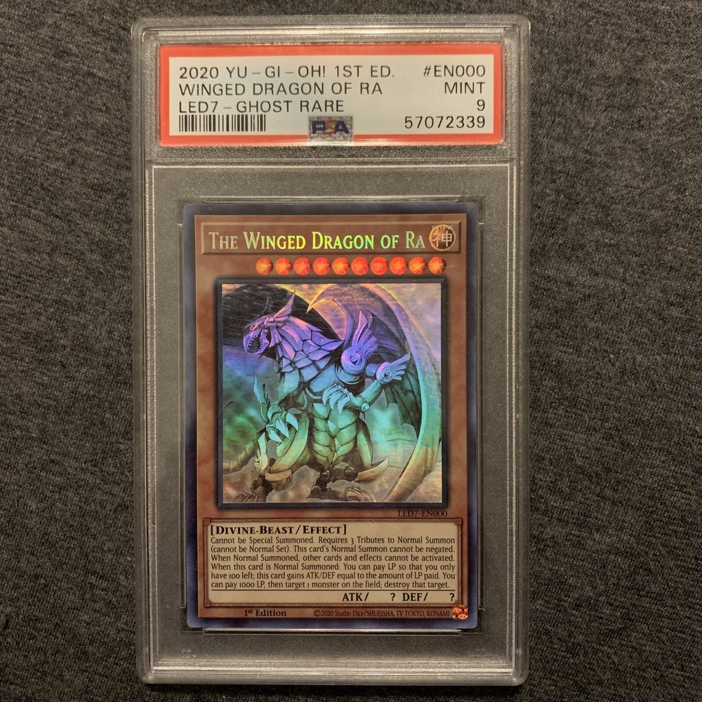 YUGIOH PSA 9 Winged Dragon of Ra 1st Edition Ghost Rare LED7-EN000 MINT NM.