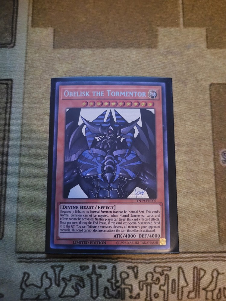 YUGIOH TCG OBELISK THE TORMENTOR TN19-EN007 PRISMATIC SECRET LIMITED EDITION ALL COPIES NEAR MINT YOU GET WHATS SHOWN IN THE PICTURE AND DESCRIPTION ALL CARDS ARE SHIP WITH PROECTIONS. ALL CARDS THAT IS BELOW 20$ WELL BE SHIP IN PWE WITH EBAY TRACKING. 24$-21$ CARDS WELL BE WITH STAMPS PWE. CARDS ABOVE 25$ WELL BE SHIP IN BUBBLE MAIL WITH USPS GROUND SHIPPING TRACKING. IF YOUR ORDERS ADDS UP TO 25$ OR ABOVE IT WOULD BE ALSO IN A BUBBLE MAILER. IF YOU ARE FROM PUERTO RICO AND ARE BUYING MAKE SURE YOU HAVE "COUNTRY LIST AS UNITED STATES NOT PRI" OR ELSE I CAN'T PRINT EBAYSHIPPING LABEL WITH TRACKING AND WELL SENT ITEM BY STAMPS TO YOU. THANKS. To international buyers since I have been having many buyers that are using Fright Forward Services. YOU ARE BUYING AT YOUR OWN RISK. As I list in my description, I ship using PWE (Plain White Envelope) for cards that does not reach $25 and above. I do not know how the Fright Services pack it after mailing it to them. All I know is that many of the PWE does not make it to its original destination (your real home address) either it's the Fright Services fault for not packing it in bubble mailer or Usps for losing it in transit. If it is being send by PWE by the Fright Services, it made take months before getting there. Also, in case if its lost or does not make it to its destination you must direct your attention to the Fright Services before contacting me. It is not my responsibly for lost mail(item) due to 3rd party delivery. To make sure you get your cards to you faster and more accuracy you must order cards combining to $25 or above that way I can use Ground Advantage and send it in bubble mailer most of the bubble mailer I use will make it to its destination. Thank you. IF YOU CAN LEAVE FEEDBACKS THAT WOULD BE MUCH APPRECIATE THANK YOU FOR BUYING.