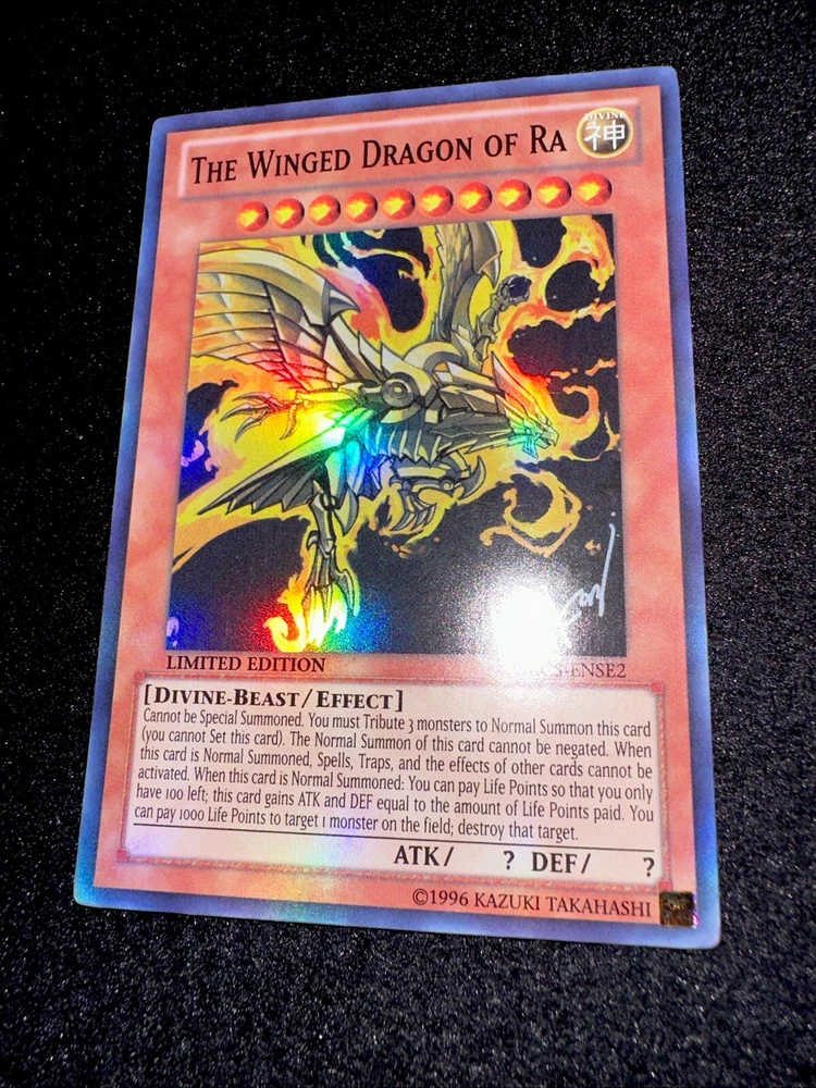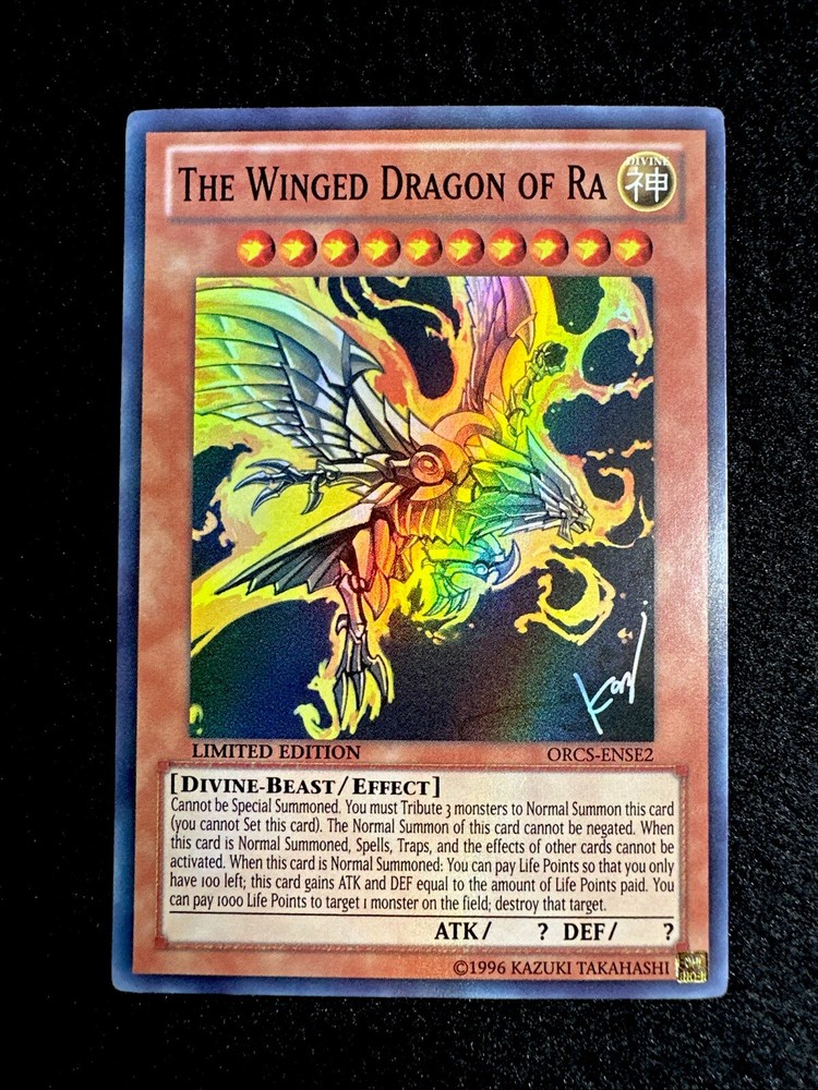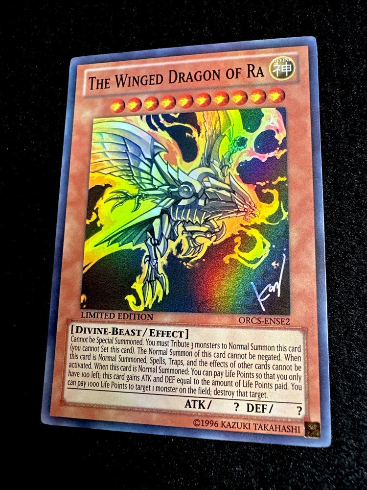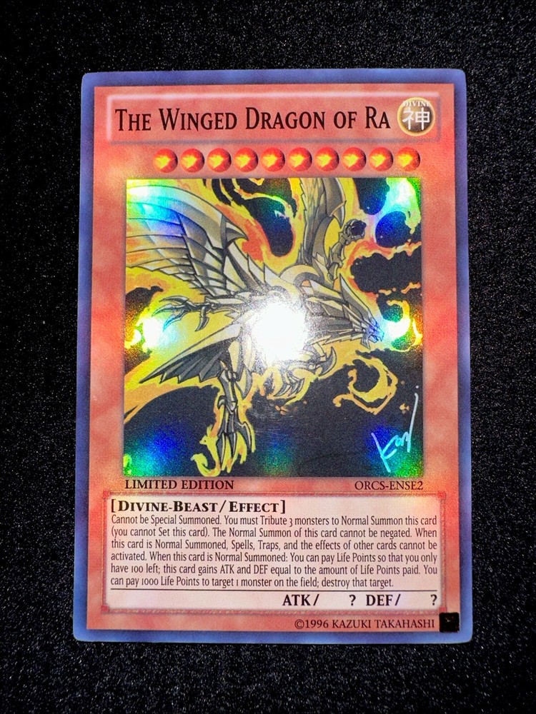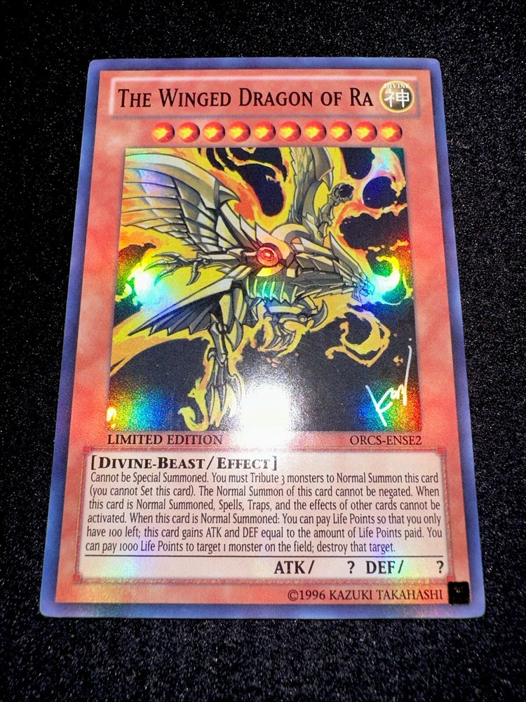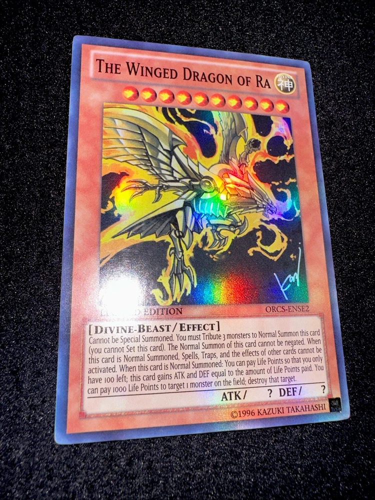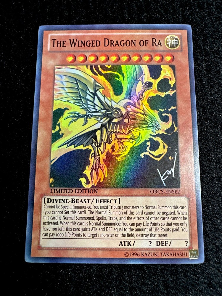🔥 YUGIOH • THE WINGED DRAGON OF RA • SUPER RARE • ORCS-ENSE2 • LIMITED • VLP 🔥 Card Sleeve Included + Top Loader • VERY LIGHTLY PLAY CARD • Authentic Konami USA Version YOU ARE GUARANTEED TO GET THE CARD NAMED IN THE TITLE. Thank you.