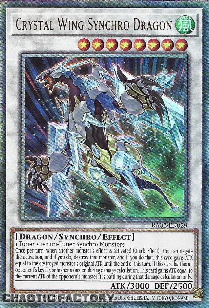 Ultimate Rare RA02-EN029 Crystal Wing Synchro Dragon 1st Edition NM YU-GI-Oh! Product details (click to expand) Condtion Details NM Mint or Near mint LP Light Played, minor scatch or edge wear HP Heavy Played; very visible damages NOTE Refer to ebay's condition guide for further details Specifications (click to expand) SKU RA02-EN029-UTR Model # Barcode # Brand YU-GI-Oh! Artist / Author Shipping Weight 0.0200kg Shipping Width 0.000m Shipping Height 0.000m Shipping Length 0.000m Shipping Cubic 0.000000000m3 Unit Of Measure ea Assembled Length 0.000m Assembled Height 0.000m Assembled Width 0.000m Type Format Delivery & Turn Around time (click to expand) Packing We always pack with toploader & soft sleeves Postage Method - Doemstic Standard Untracked Untrack letter post, delivery within 15 business days Domestic Tracked Tracked letter post, delivery within 15 business days with tracking Express Post Express Post; delivery after 2 to 3 business days after dispatch using AUSPOST's express network, exclusion applies; check auspost's website for details Turn Around time Dispatch 2 to 3 business days; which mean EXCLUDE WEEKEND © 2025 Chaotic Factory