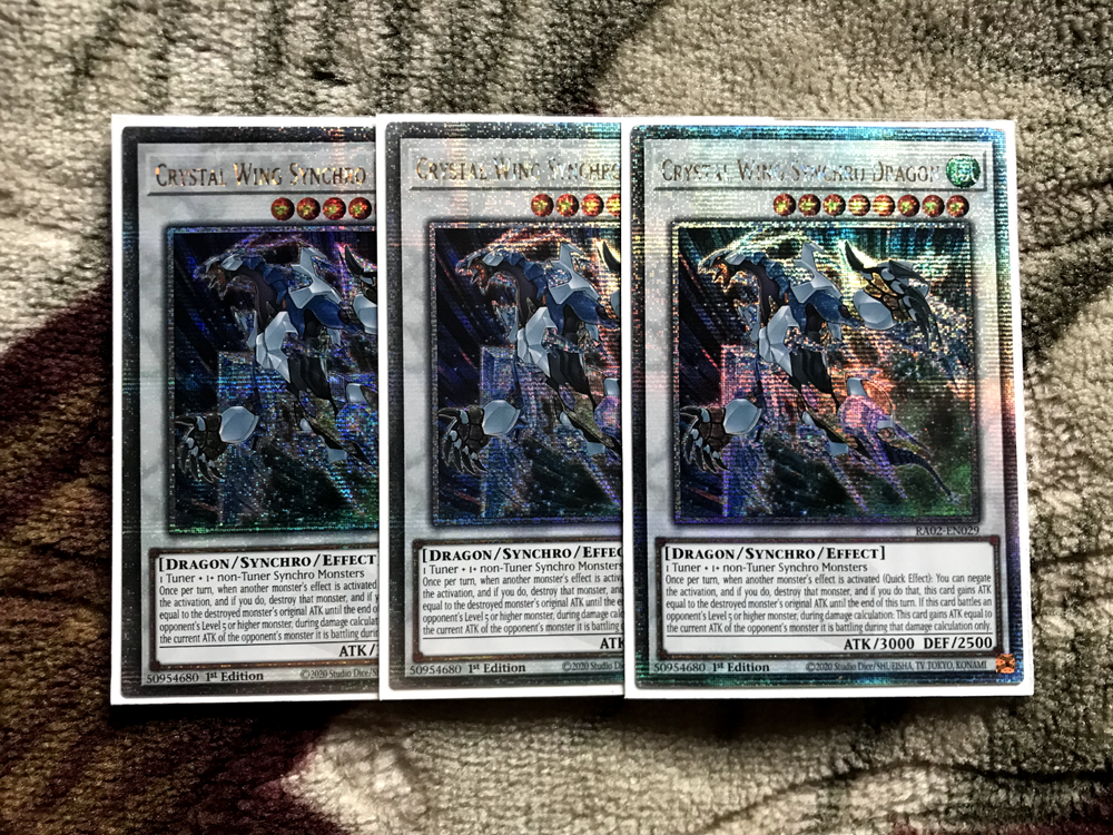 The YU-GI-OH! X3 Crystal Wing Synchro Dragon from the Yugi set is a highly sought after collectable card in the Yu-Gi-Oh! TCG. This Secret Rare card features 1st Edition printing, making it a valuable addition for collectors and players alike. With its unique design and rarity, this card celebrates the 25th anniversary of the Yu-Gi-Oh! franchise, making it a must-have for any serious card game enthusiast.