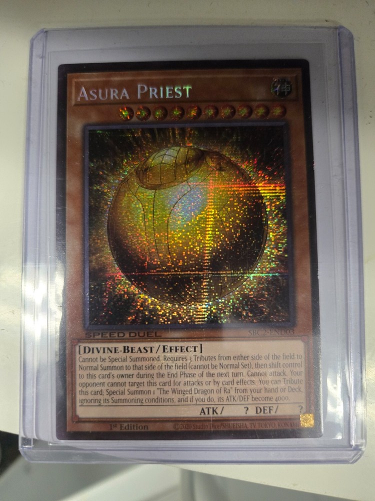 YU-Gi-Oh! winged dragon of ra sphere mode Asura Preist wrong name misprint. Condition is Ungraded. Shipped with USPS Ground Advantage....