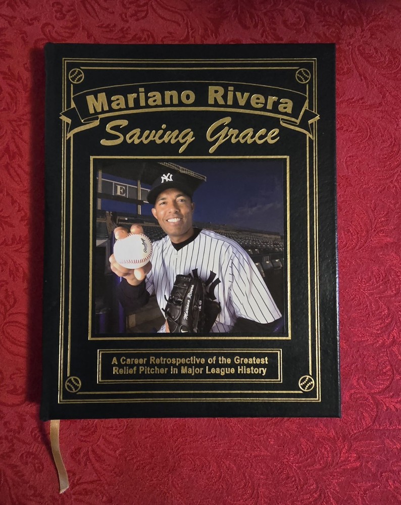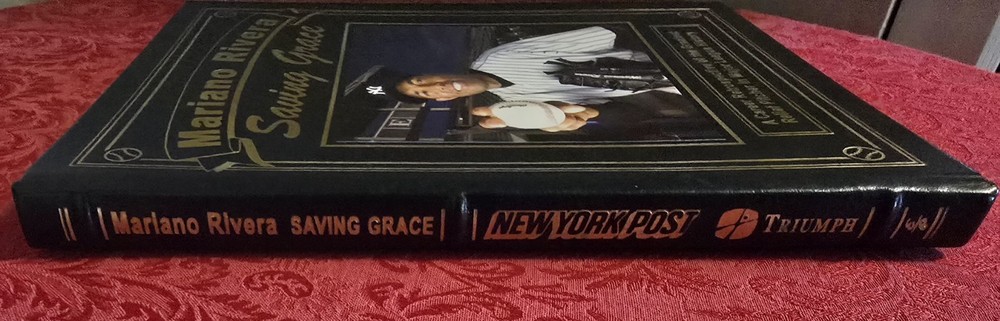 The product is a limited edition blue leather book titled "Mariano Rivera: Saving Grace" published by Easton Press. It is a biography & autobiography written in English, focusing on the topic of bibliographies and indexes. This collectible item would appeal to fans of baseball memorabilia, especially those interested in the New York Post and the legendary career of Mariano Rivera. The leather binding adds a touch of luxury and durability to this special edition book. Carefully review all photos and let me know if you have any questions prior to purchasing! *Please note that most items are vintage and/or previously used. I do my best to write up any known defects and show the condition accurately. If you have any questions, send a message, and I will happily get back to you as soon as I can. * If you message me prior to purchase, I can usually combine shipping on multiple items! *Thank you so much for visiting my store. I often add new items, If you are searching for a special trinket, ask me. I will probably have it! Have a great day!