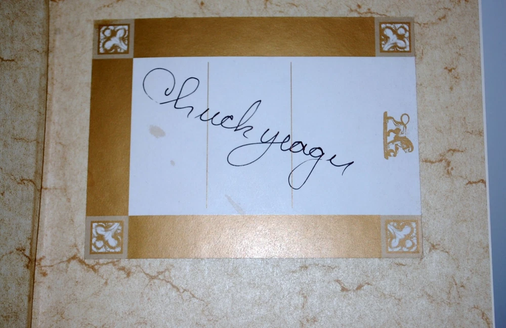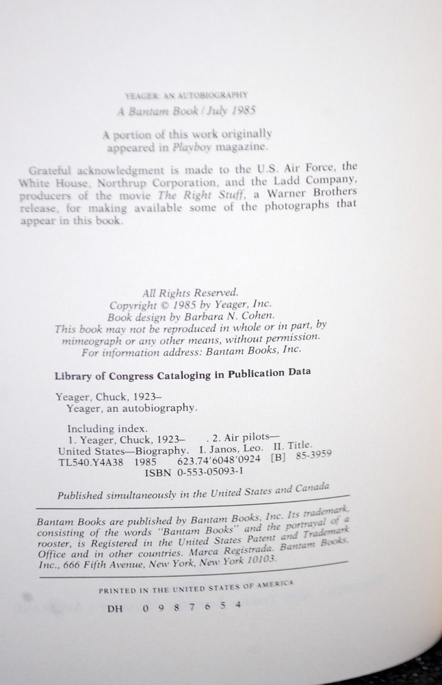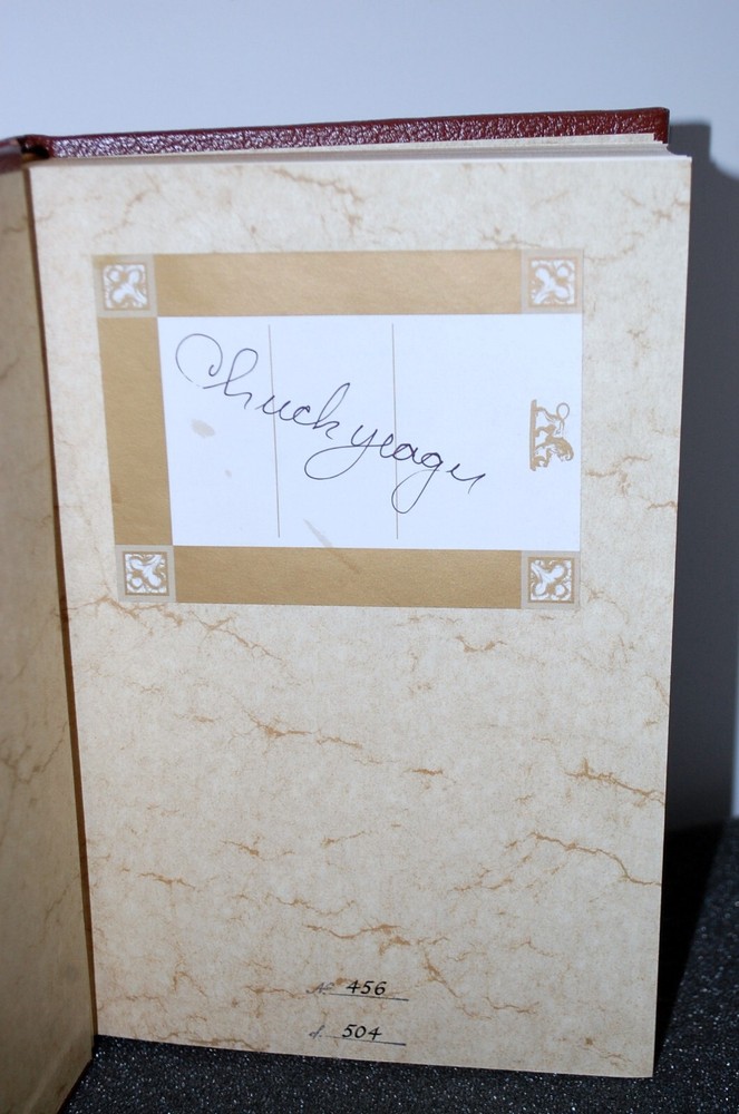 Yeager An Autobiography Bantam Books Limited Edition # 456 of 504 Leather bound. Flat Signed on bookplate. Very nice gild. One (1) small scuff on top left front cover. Please see pics and zoom to verify condition, will pack with respect to protect integrity in a box.