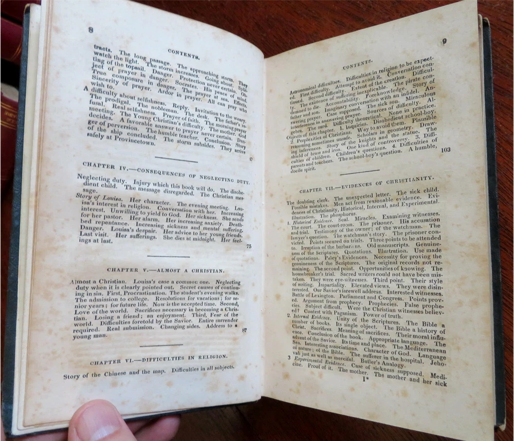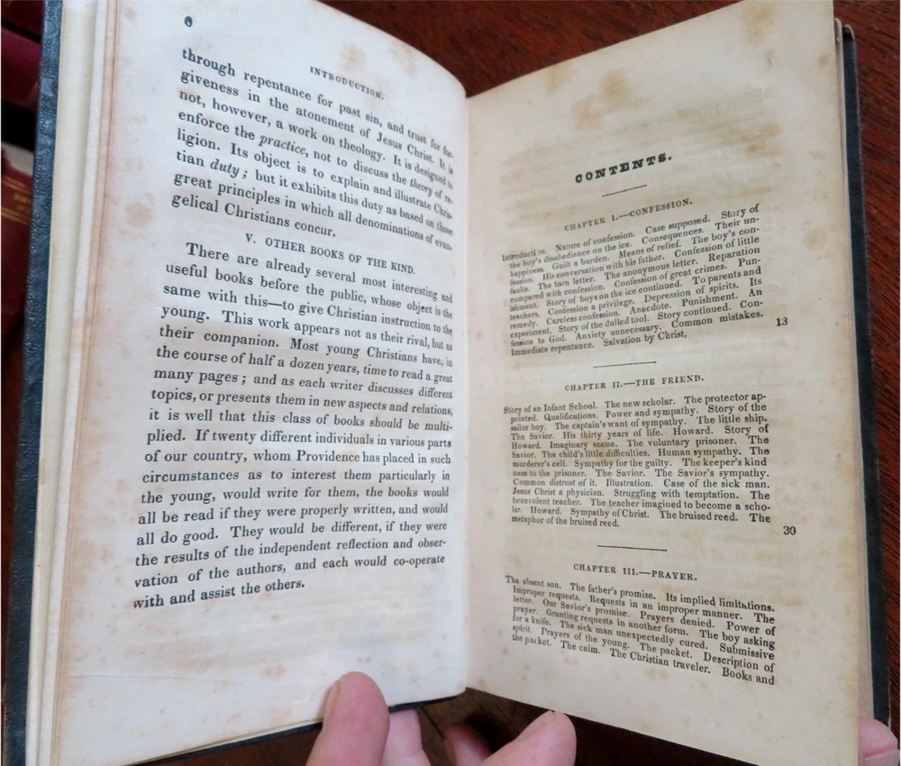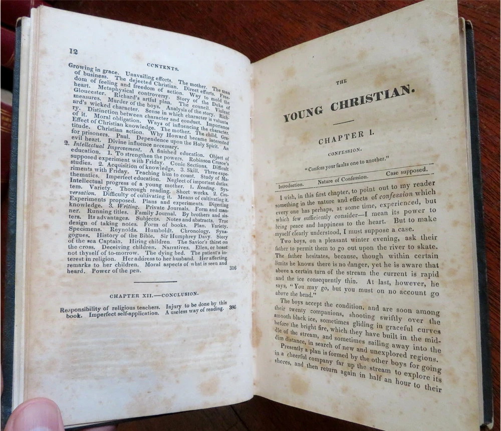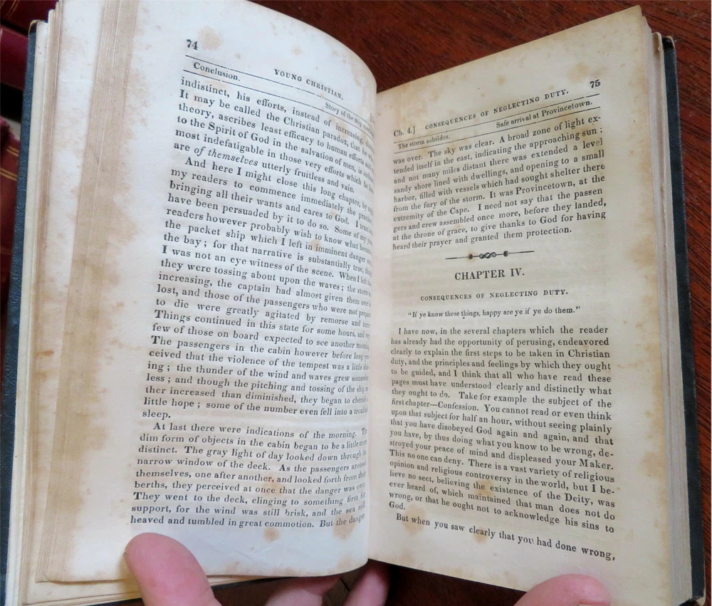 Young Christian Life Advice Christian Duty 1832 Jacob Abbott leather book Young Christian Life Advice Christian Duty 1832 Jacob Abbott leather book (Old Books, 19th Century Books, Leather Books, Religion, Christianity, Philosophy, Life Advice). The Young Christian: or A Familiar Illustration of the Principles of Christian Duty by Jacob Abbott. Published 1832, New York by American Tract Society. 395 pages. Text in English. Attractive antiquarian 1/4 leather binding, smooth spine, gilt bands, gilt title lettering. Book is physically old and shows some signs of handling and time. Binding gently age worn but still appealing, leather and joints slightly rubbed but still supple, remains overall very attractive as an object. Text block paper is gently age toned as typical, internally book remains mostly clean, tight and sound. A book which has been taken care of but may/ does not look like new. Still attractive on the shelf. Book displays a pleasing and unique age patina and is in rather nice antiquarian condition, any age flaws seem easy to overlook or forgive. Please review photos for more detailed attempt to present this book as it survives. We often over-describe any flaws that many sellers would not even bother to mention since most people would overlook them as minor and unworthy of comment. Many people tell us the books they receive from us are nicer in person than they appears on the screen. We want you to be clear about what you are buying, so we take numerous photos and try to describe it openly and honestly. Book Measures c. 7 1/4" H x 4 1/2" W. [B8924].