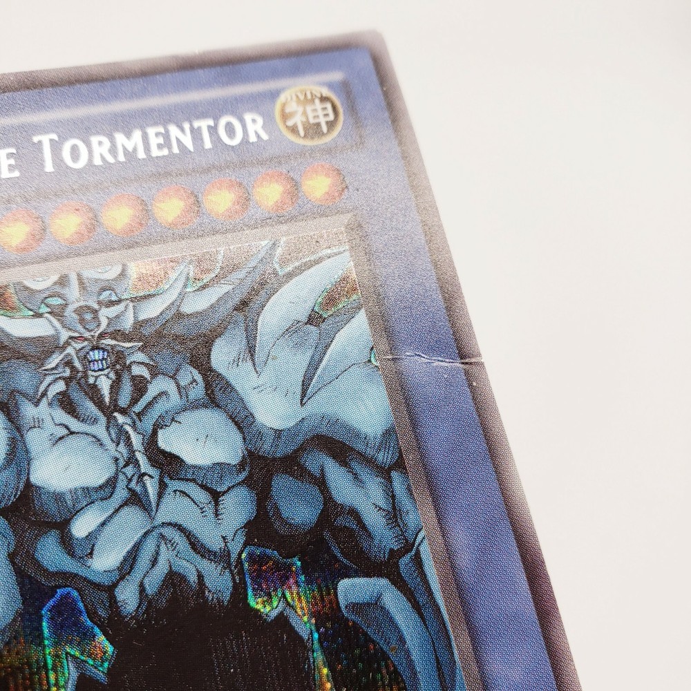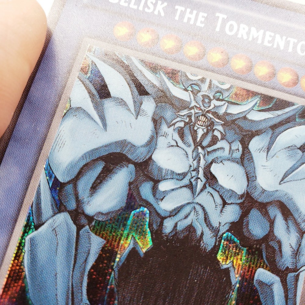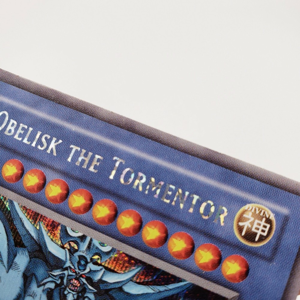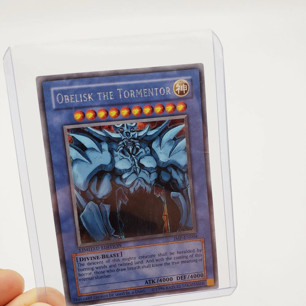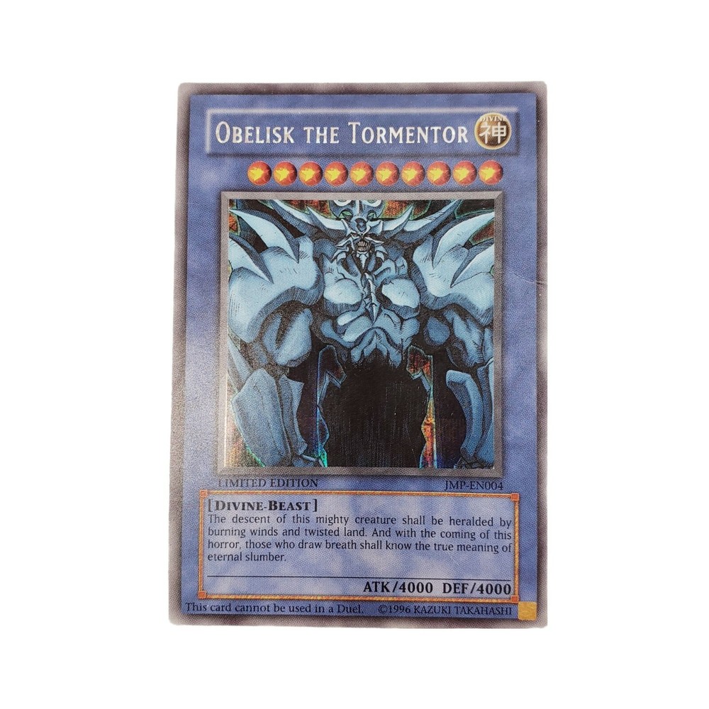 Vintage Konami 1996 Yu Gi Oh! Obelisk The Tormentor trading card game. A Secret Rare featuring holofoil/prism lettering and art. Limited Edition, JMP-EN004.