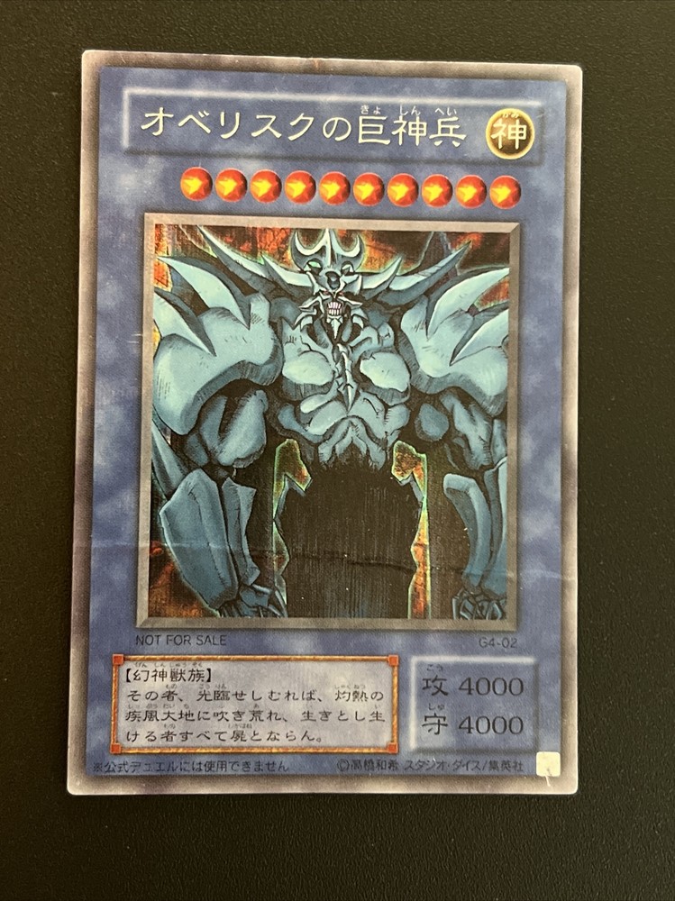 Yu Gi Oh Obelisk The Hector Rare Segreta G4-02 Japanese Jap Vintage The description of this item has been automatically translated. If you have any questions, please feel free to contact us. WELCOME CONDITIONS: Paper in photo, scroll through the images EXPLORE OUR YU-GI-OH PRODUCT SECTION! SEAL YOURSELF AND GET INSPIRED. Click here! https://www.ebay.it/str/ne4r07yugiohitalia/Prodotti-sigillati/_i.html?store_cat=34734427017 ARE YOU LOOKING FOR ACCESSORIES TO PROTECT YOUR COLLECTION? Click on the link: https://www.ebay.it/str/ne4r07yugiohitalia/Accessori/_i.html?store_cat=34734420017 (if they do not join automatically by adding the products to the cart) 1 Add to your cart (without clicking the 'Buy Now' button) all the cards you wish to purchase. 2 Open the eBay cart page 3 Click the 'Request Total From Seller' button. THIS PROCEDURE IS ONLY POSSIBLE VIA PC. IT DOES NOT WORK WITH APP / TABLET / SMARTPHONE. 4 When the total has been correctly combined, we will send you a message/email and you can proceed with the payment by going to the cart. PRICES AND SERVICES AT THE END OF THE DESCRIPTION PACKAGES: We prepare packages/envelopes in the best possible way, protecting the purchased products as best as possible. If by chance the item arrives different, damaged or with problems, contact us and we will provide you with all possible assistance. WARRANTY - INFO - CONTACTS WE GUARANTEE THAT ALL OUR PRODUCTS ARE 100% ORIGINAL. We have many cards/boxes/accessories for sale, also take a look at our ebay shop you might find something interesting. CLICK THE LINK ( https://www.ebay.it/str/ne4r07yugiohitalia ) For any doubts or questions, write to us without problems, we will reply as quickly as possible. THANKS FOR YOUR VISIT. SHIPPING: ITALY Post 1 confirms the delivery of the package Registered mail With tracking code and complete control of the trip. Courier express (GLS or tnt ) With tracking code and complete control of the trip. - If you have a preference on the type of courier, write us a message, otherwise we will do it. - Possibility of having the package delivered to a collection point, write to us if you need help looking for it EUROPE ( Combine shipping Priority No tracking Registered Shipment tracking Courier service Shipment tracking AMERICA, ASIA, OCEANIA AND AFRICA (Combine shipping) Priority No tracking Registered Shipment tracking Courier service AMERICA Shipment tracking Courier service all world Shipment tracking Courier service oceania Shipment tracking Cost may vary depending on the size and weight of the package. FOR ANY QUESTION CONTACT ME. Click on the link: https://www.ebay.it/str/ne4r07yugiohitalia/Accessori/_i.html?store_cat=34734420017 4 When the total has been correctly combined, we will send you a message/email and you can proceed with the payment by going to the cart. We prepare packages/envelopes in the best possible way, protecting the purchased products as best as possible. If by chance the item arrives different, damaged or with problems, contact us and we will provide you with all possible assistance. We have many cards/boxes/accessories for sale, also take a look at our ebay shop you might find something interesting. CLICK THE LINK ( https://www.ebay.it/str/ne4r07yugiohitalia ) For any doubts or questions, write to us without problems, we will reply as quickly as possible. - Possibility of having the package de Fascia di età 4+ Produttore Konami Set - Yugi - Lingua Italiano Rarità Rara segreta Illustratore Kazuki Takahashi Attributo, colore MTG Incolore Finitura Standard Dimensione della carta Giapponese Tipo di carta Effetto Condizione carta scorri le foto Nome della carta Presente Nel Titolo Gioco Yu-Gi-Oh! Materiale Carta consistente
