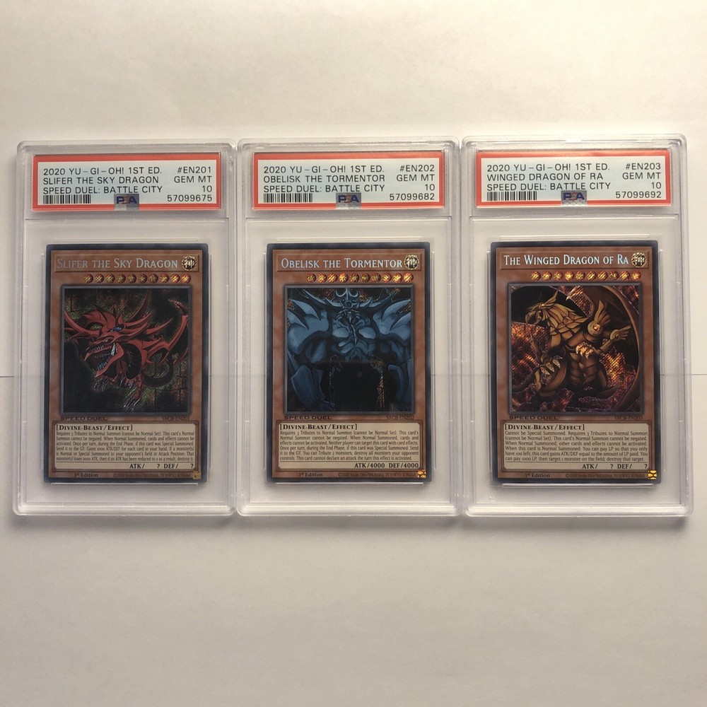 2020 Yu Gi Oh 1st ED. Speed Duel: Battle City Slifer The Sky Dragon EN201, Obelisk The Tormentor EN202, Winged Dragon Of Ra EN203 Set- Thank you-