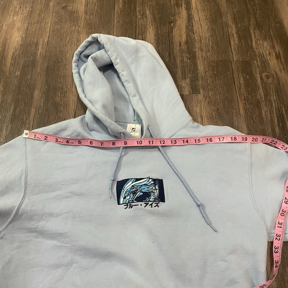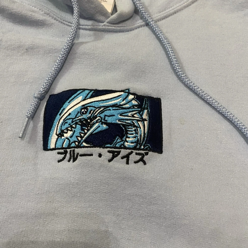 Yu-Gi-Oh! Blue Eyes White Dragon Embroidered Hoodie Sweatshirt Men's S Gilgamesh. Condition is Pre-owned. Shipped with USPS Ground Advantage....