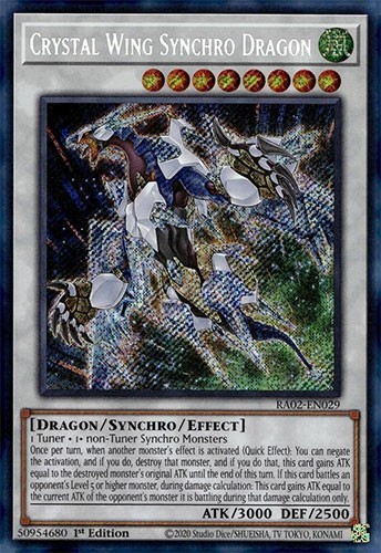 Absolutely love this Crystal Wing Synchro Dragon! The Secret Rare holo looks stunning, and the card arrived in perfect condition—super clean edges and no scratches. BBToyStore is super reliable, and their free US shipping is a huge plus. Got it super fast too! Highly recommend for any Yu-Gi-Oh! collector or competitive player. Great service and an awesome card—definitely a must-have for any deck!