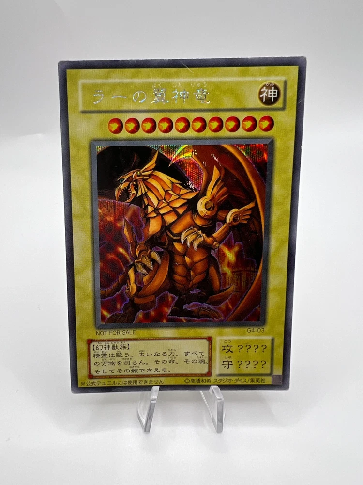 Yu-Gi-Oh! Card - Egyptian God Cards - Slifer Obelisk Ra G4 - Japanese. - - - Please consider following our Instagram where we post exclusive access to card’s not listed on this eBay. - - - INSTAGRAM —> PokeSellerKarl. FOR DISCOUNTS PLEASE MAKE OFFERS ON MULTIPLE CARDS. Free shipping offered as standard - Cards will be sent as letter packets and may take a short while to arrive. The Cards in the photo are almost certainly the cards sent. WE USE OUR OWN METHOD OF ASSESSING CARD CONDITION. PERFECT = PACK FRESH 101% NEW. EXCELLENT = NO NOTICABLE SCRATCHES OR WHITING. GOOD = SLIGHT WHITING OR SURFACE SCRATCHES. MODERATELY PLAYED = CONSIDERABLY WHITING AROUND THE EDGES OR SCRATCHED FRONT. DAMAGED = THE CARD IS DEAD AF OR HAS A FOLD. Additional Policies. Returns are accepted for 30 days after receiving the item. Please message us before you making the return shipment back to me. The buyer is responsible for covering shipment fee’s when returning the item. We reserve the right to cancel based on Japan Post being AWFUL and stopping delivery to certain countries for no reason. Not our fault. Japan Post sucks. Thank you for using KarlSellsThings. We appreciate you guys so much. If you’ve read this far, just know that by buying this card you are funding a happy Karl, a happy wife, and fueling my love for coffee that then fuels me to further hunt down cards for you guys. Thank you. If you read this far….Oi thanks. Thank you. Gracie Mille. Danke Sehr. Merci. Spasiba. Salamat. Дякую.