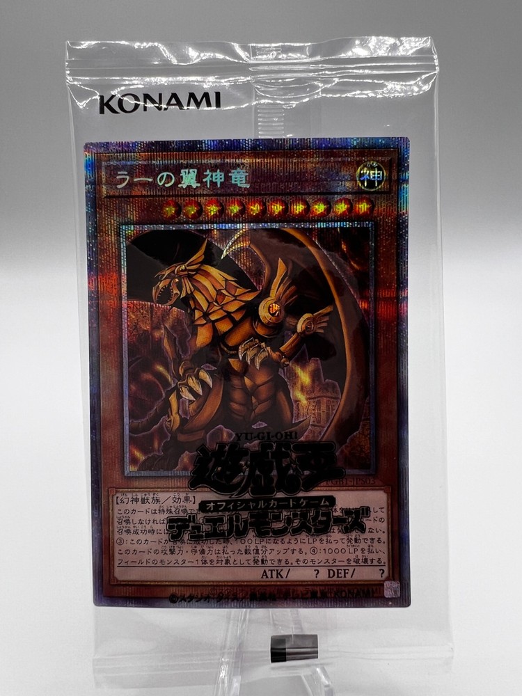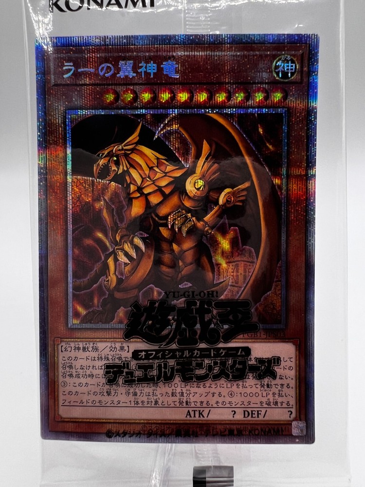 Yu-Gi-Oh Card The Winged Dragon of Ra PGB1-JPS03 Prismatic Secret Rare Japanese - - - Please consider following our Instagram where we post exclusive access to card’s not listed on this eBay. - - - INSTAGRAM —> PokeSellerKarl. FOR DISCOUNTS PLEASE MAKE OFFERS ON MULTIPLE CARDS. Free shipping offered as standard - Cards will be sent as letter packets and may take a short while to arrive. WE USE OUR OWN METHOD OF ASSESSING CARD CONDITION. PERFECT = PACK FRESH 101% NEW. EXCELLENT = NO NOTICABLE SCRATCHES OR WHITING. GOOD = SLIGHT WHITING OR SURFACE SCRATCHES. MODERATELY PLAYED = CONSIDERABLY WHITING AROUND THE EDGES OR SCRATCHED FRONT. DAMAGED = THE CARD IS DEAD AF OR HAS A FOLD. Additional Policies. Returns are accepted for 30 days after receiving the item. Please message us before you making the return shipment back to me. The buyer is responsible for covering shipment fee’s when returning the item. We reserve the right to cancel based on Japan Post being AWFUL and stopping delivery to certain countries for no reason. Not our fault. Japan Post sucks. Thank you for using KarlSellsThings. We appreciate you guys so much. If you’ve read this far, just know that by buying this card you are funding a happy Karl, a happy wife, and fueling my love for coffee that then fuels me to further hunt down cards for you guys. Thank you. Thank you. Gracie Mille. Danke Sehr. Merci. Spasiba. Salamat. Дякую.