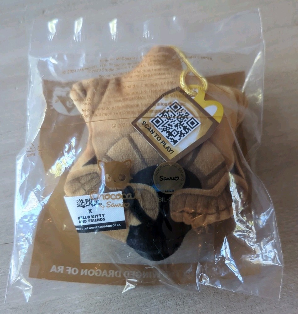 This adorable sealed McDonald's toy is a must-have for collectors! The playful Chococat x Winged Dragon of Ra crossover blends Sanrio’s cuteness with Yu-Gi-Oh!’s epicness, making it a quirky and rare piece. Still factory sealed, it's perfect for fans of either franchise or anyone who loves limited-edition merch. Such a fun Happy Meal surprise!