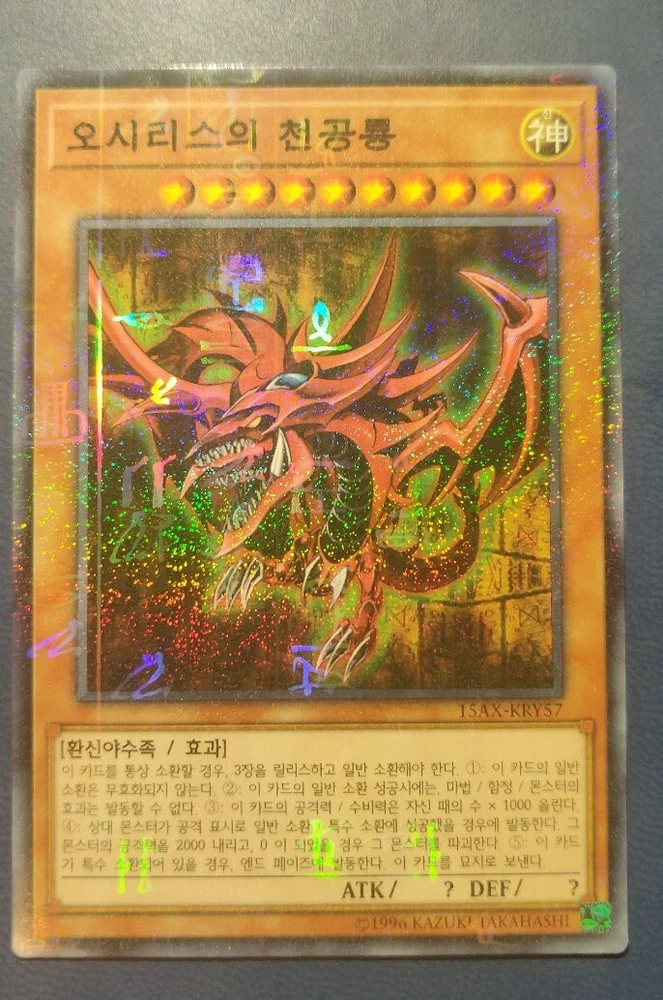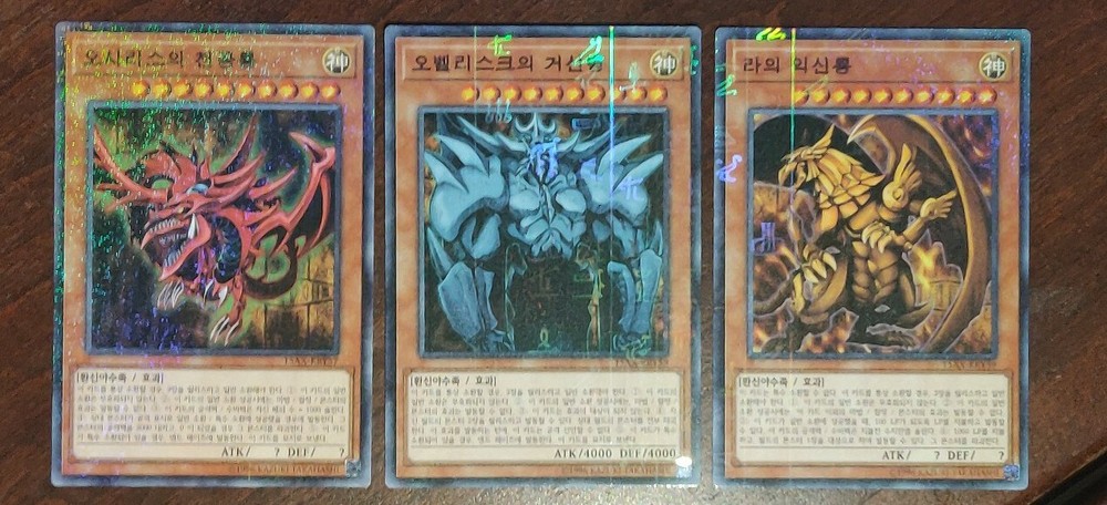 YuGiOh! Complete MILLENIUM RARE Egyptian God Card Collection! 1x OBELISK THE TORMENTOR! 1x SLIFER THE SKY DRAGON! 1x THE WINGED DRAGON OF RA! ABSOLUTELY STUNNING HOLOGRAPHIC PATTERN ON THIS CARD, PLEASE LOOK AT ALL PHOTOS IN THE LISTING! ABSOLUTELY A MUST HAVE for all collectors! ALL CARDS in Mint / NM condition. Condition is New. Shipped with USPS First Class Package. 100% AUTHENTIC BUY WITH CONFIDENCE All cards are in the Korean language. Please note that this is not the English version of the card. You will receive the card in the photos in my listing in a safe protective hard case. Thank you for looking at my listing.