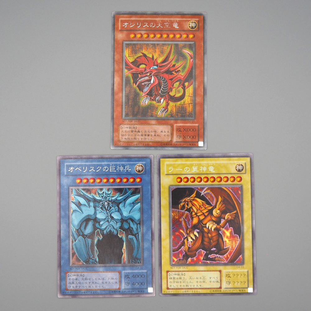 Yu-Gi-Oh Egyptian God Slifer Obelisk Ra G4-01 G4-02 G4-03 3set VG Japanese n747 Description Condition : Very Good (Please check the photos) [ MINT > Near MINT > Excellent > Very Good > Good > Poor ] Include : Egyptian God Slifer The Sky Dragon,Egyptian God Obelisk The Tormentor,Egyptian God The Winged Dragon of Ra Edition : G4-01, G4-02, G4-03 Rarity : Secret Parallel Rare Shipping [More Than Total $80+] Free Shipping!!! By Japan Post with Tracking Number. Shipping Fee is a flat rate of $6. Free conbined shipping for 2 or more!! International Buyers - Please Note: Import duties, taxes, and charges are not included in the item price or shipping cost. These charges are the buyer's responsibility. Please check with your country's customs office to determine what these additional costs will be prior to bidding or buying.