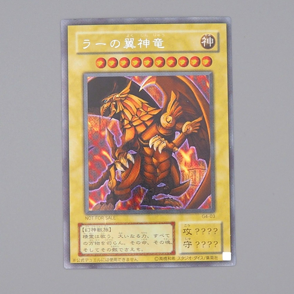 Yu-Gi-Oh Egyptian God The Winged Dragon of Ra G4-03 Secret Rare Japanese n420 Description Condition : Excellent (Please check the photos) [ MINT > Near MINT > Excellent > Very Good > Good > Poor ] Include : Egyptian God The Winged Dragon of Ra Edition : G4-03 Rarity : Secret Parallel Rare Shipping [More Than Total $80+] Free Shipping!!! By Japan Post with Tracking Number. Shipping Fee is a flat rate of $6. Free conbined shipping for 2 or more!! International Buyers - Please Note: Import duties, taxes, and charges are not included in the item price or shipping cost. These charges are the buyer's responsibility. Please check with your country's customs office to determine what these additional costs will be prior to bidding or buying.