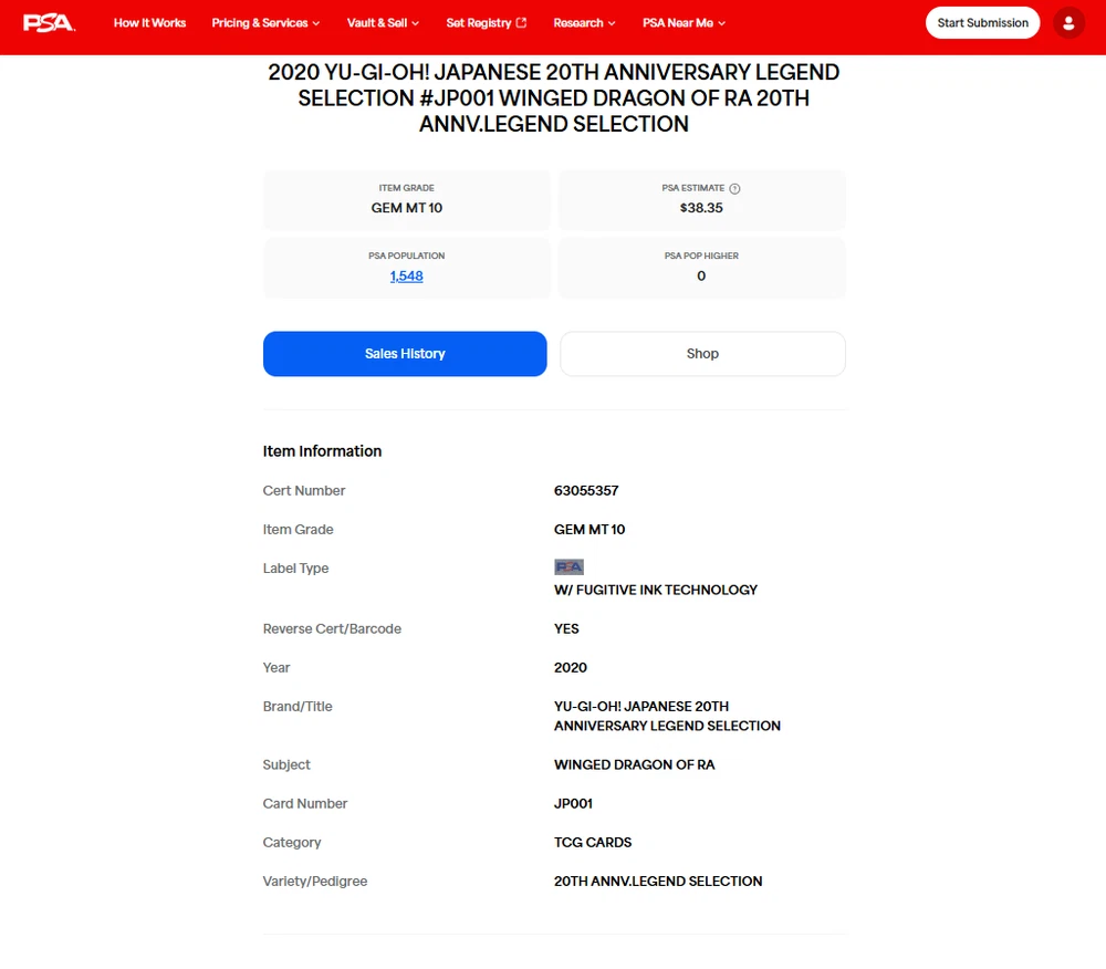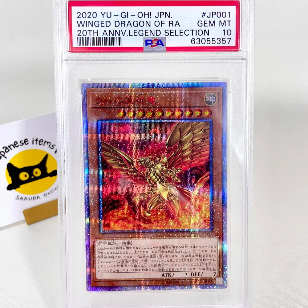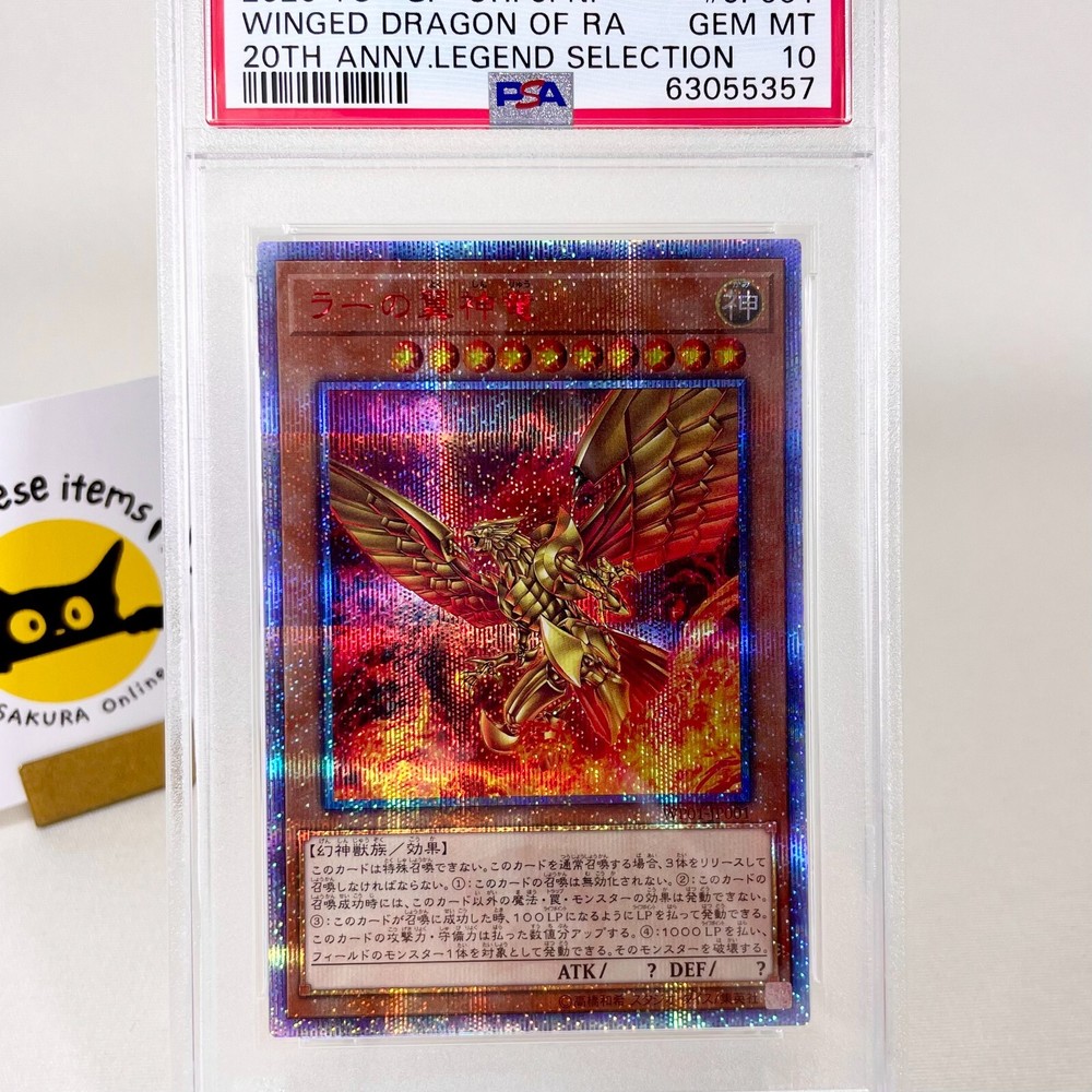 π Product Description π For sale is a highly sought-after Japanese Yu-Gi-Oh! trading card: π₯ The Winged Dragon of Ra β 20th Secret Rare β WP01-JP001 β GEM MINT PSA 10 π₯ π This card was released in 2020 as part of the exclusive 20th Anniversary Legend Selection , commemorating the rich history of Yu-Gi-Oh! in Japan π―π΅. It features stunning artwork and ultra-rare 20th Secret Rare foiling , making it a must-have for collectors and duelists alike π. π Graded by PSA with a perfect GEM MINT 10 , this card is a pristine collectible that will be a centerpiece in any serious Yu-Gi-Oh! collection π. β¨ Key Features: β Official Japanese release β WP01-JP001 β Ultra-rare 20th Secret Rare finish β Released in 2020 , a rare and limited-edition card β PSA certified GEM MINT 10 β Features The Winged Dragon of Ra , one of the most iconic God Cards π β A collectorβs dream and an investment-grade piece π° π Add this ultra-rare, 2020 Japanese 20th Anniversary Winged Dragon of Ra to your collection today! Donβt miss out on this legendary card! Shipping We will ship by DHL or FedEx or Japan Post or eBay SpeedPAK Economy . International Buyers ? Please Note: Import duties and taxes are not included in the item price or shipping cost. Please check with your country`s customs office to determine these additional costs prior to bidding or buying. Additionally, if the delivery address is in a remote area, there may be additional charges by FedEx or DHL. If such charges occur, you may be asked to pay an additional $15 to $20. Thank you for your understanding.
