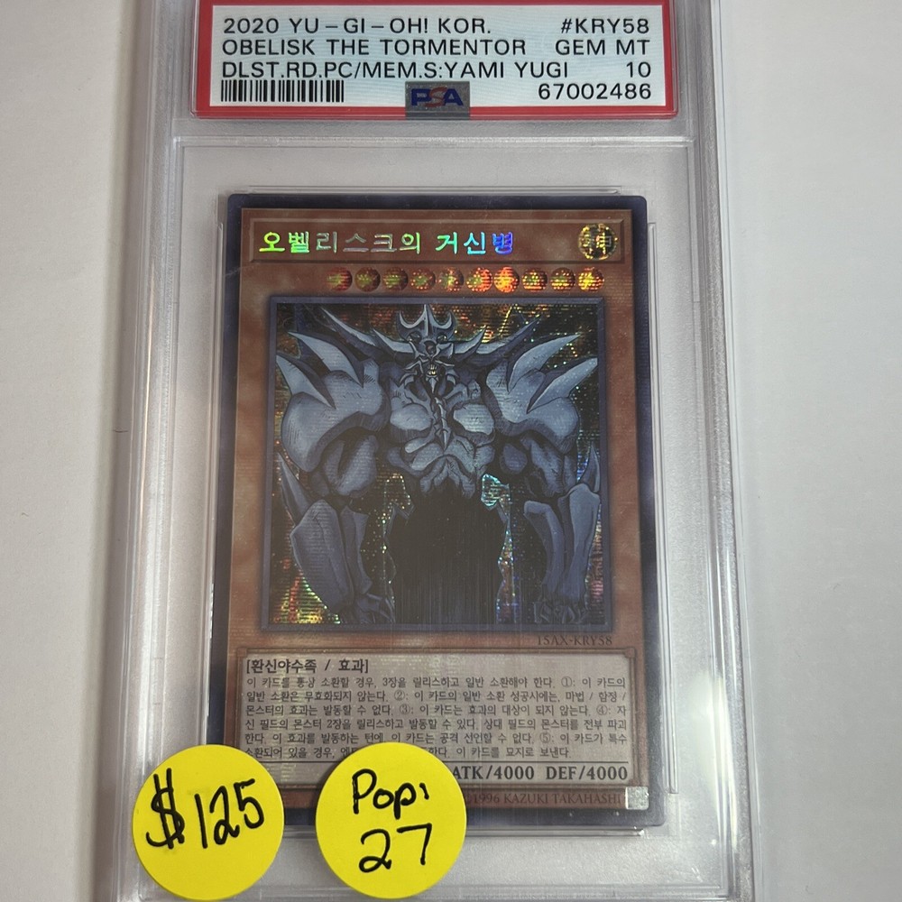 Yu-Gi-Oh Korean Obelisk the Tormentor Secret Rare - 15AX-KRY58. Condition is "Used". Shipped with USPS First Class. Condition is Near Mint/Mint. Good luck! 🍀