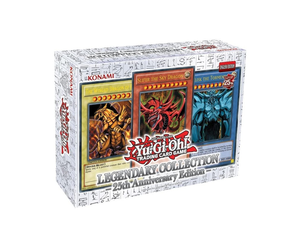 Yu-Gi-Oh! Legendary Collection 25th Anniversary Case (5 Boxes) Description One of the most storied Yu-Gi-Oh! Trading Card Game items returns for the 25th anniversary of the card game! The very first Yu-Gi-Oh! Trading Card Game Legendary Collection is reborn as Legendary Collection: 25th Anniversary Edition! It contains 6 Booster Packs and 6 Ultra Cards, including special variant cards of some of the most famous monsters from the original anime series. In addition to the 6 Ultra Rare cards, which include the highly requested and sought-after original Egyptian God Card Promos, the 25th Anniversary Edition will include a bonus 7th card! This 7th card will offer Duelists a sneak peek at a brand-new rarity created just for the 25th anniversary celebrations: The Quarter Century Rare! Each Legendary Collection: 25th Anniversary Edition will include 1 random Quarter Century Rare version of 1 of the 6 special varaint cards to give Duelists a taste of what's to come! Features: Treasures of the Pharaoah return for the 25th anniversary! Each collector's case includes 5 collector's set boxes Each collector's set includes 6 packs (Legend of Blue Eyes White Dragon, Metal Raiders, Spell Ruler, Pharaoh's Servant, Dark Crisis, and Invasion of Chaos), 6 ultra rare cards (Obelisk the Tormentor, Slifer the Sky Dragon, The Winged Dragon of Ra, Blue-Eyes White Dragon, Dark Magician, and Red-Eyes Black Dragon) Each set also includes 1 Quarter Century Secret Rare version of 1 of 6 possible cards. Product Details: Brand: Yu-Gi-Oh! Grade Rating: Ungraded Unit Count: 1.0 Count Theme: Anime Is Autographed: No Product Dimensions: 8 x 6.5 x 4.5 inches Item Weight: 1.5 pounds Item model number: 86109 Manufacturer recommended age: 14 years and up Is Discontinued By Manufacturer: No Manufacturer: Konami Shipping Most orders will be shipped within 1 business days once we receive your payment. Except on weekend or public holidays. A shipping notification will be emailed to you once your order has been shipped. International shipping via eBay Global Shipping Program. No shipping to AK, HI, PR, APO/FPO, US Protectorates and PO Box. Payment We Accept Payment Via PayPal and All Major Credit Cards. Return We stand behind our products. Items can be returned for exchange or full refund within 30 days from the date you receive your merchandise. Return shipping is the responsibility of buyer unless the return is a result of our mistake (i.e., your receive the wrong item). We will pay for shipping replacement back to you if an exchange of the same product is requested. Contact us If you have any questions please contact us. We respond within 1 business day or less.