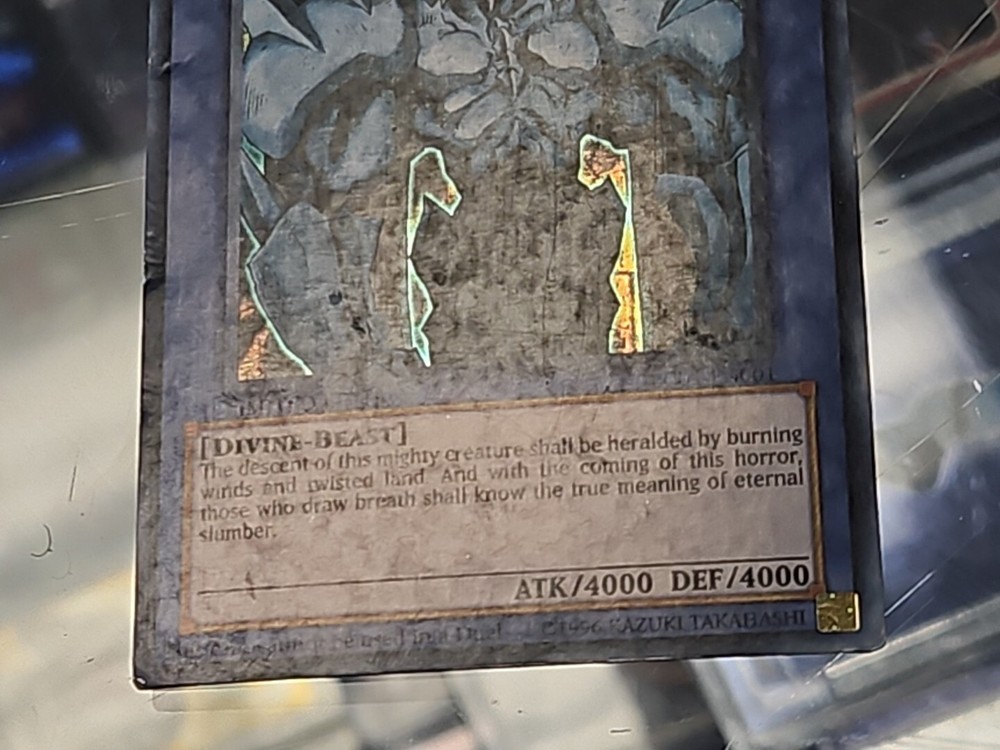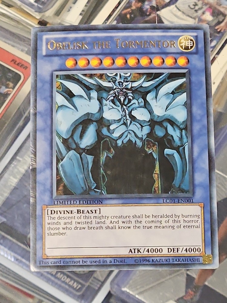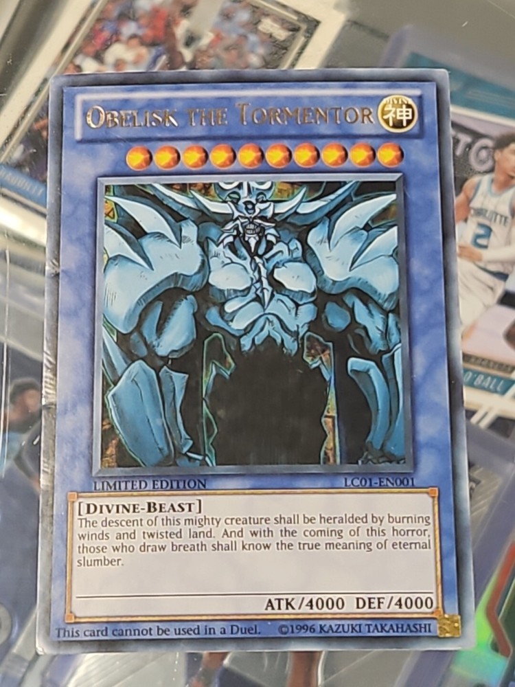 This Yu-Gi-Oh! Legendary Collection card features Obelisk The Tormentor, a powerful Normal type card manufactured by Konami in 1996. The card has a stunning Holo finish that makes it a must-have for any collector. It is part of the Yu-Gi-Oh! TCG game and is perfect for players and collectors alike. Don't miss out on the chance to add this rare card to your collection.