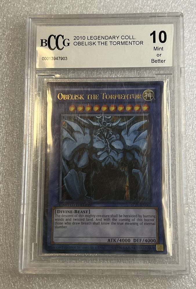 YuGiOh Legendary Collection Obelisk the Tormentor Limited LC01-EN001 PSA 10 GEM. Condition is Graded. Shipped with USPS Ground Advantage.
