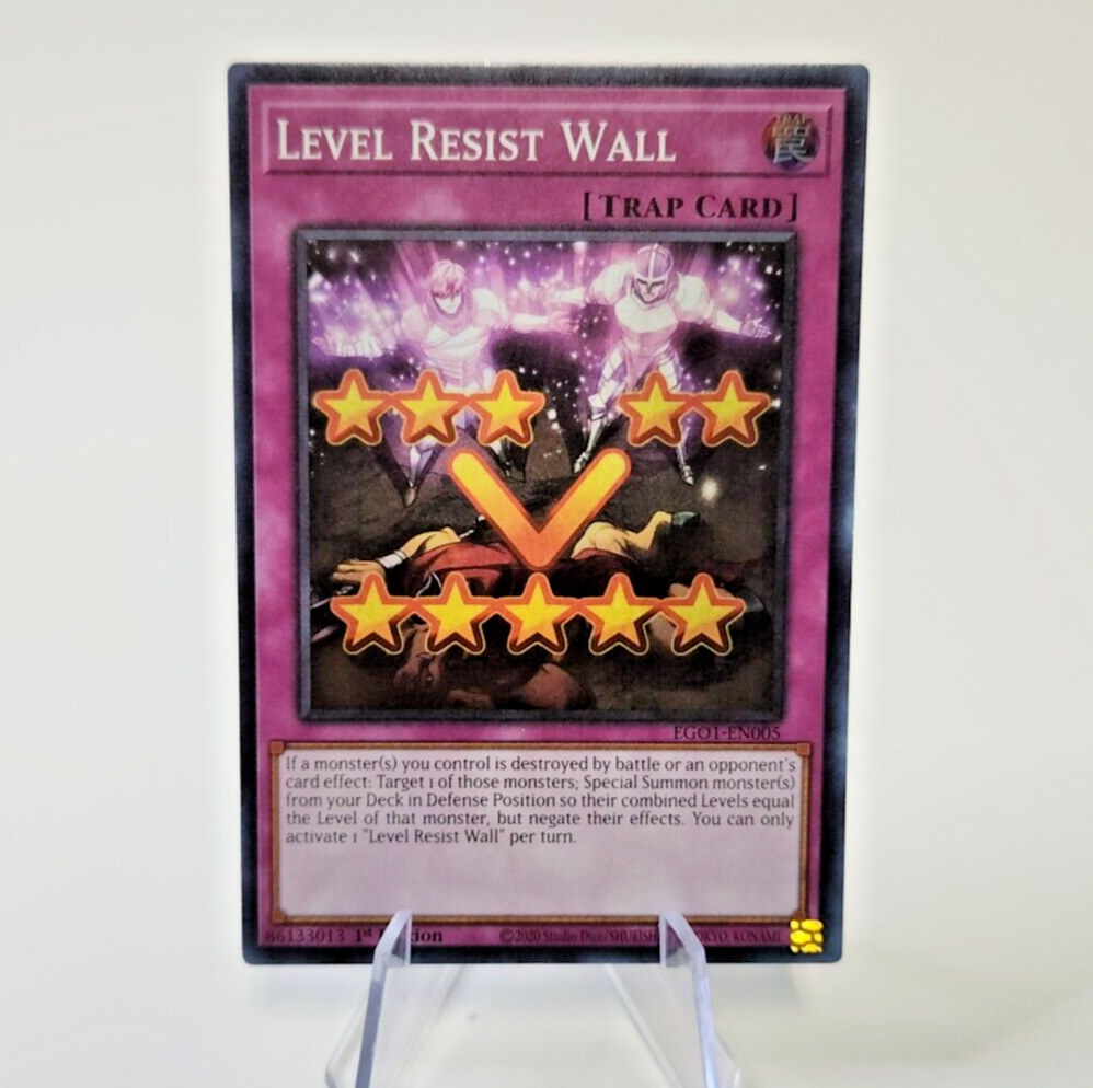 The Yu-Gi-Oh! Level Resist Wall EGO1-EN005 Egyptian God Deck: Obelisk the Tormentor is a super rare 1st edition card manufactured by Konami in 2020 for the Yu-Gi-Oh! TCG. This Trap-Normal card features the Egyptian God character Ego in a holo finish, depicting a wall-like creature/monster. With standard card size and English language, this collectible card is designed for players aged 6 and above, making it a valuable addition to any Yu-Gi-Oh! card collection.