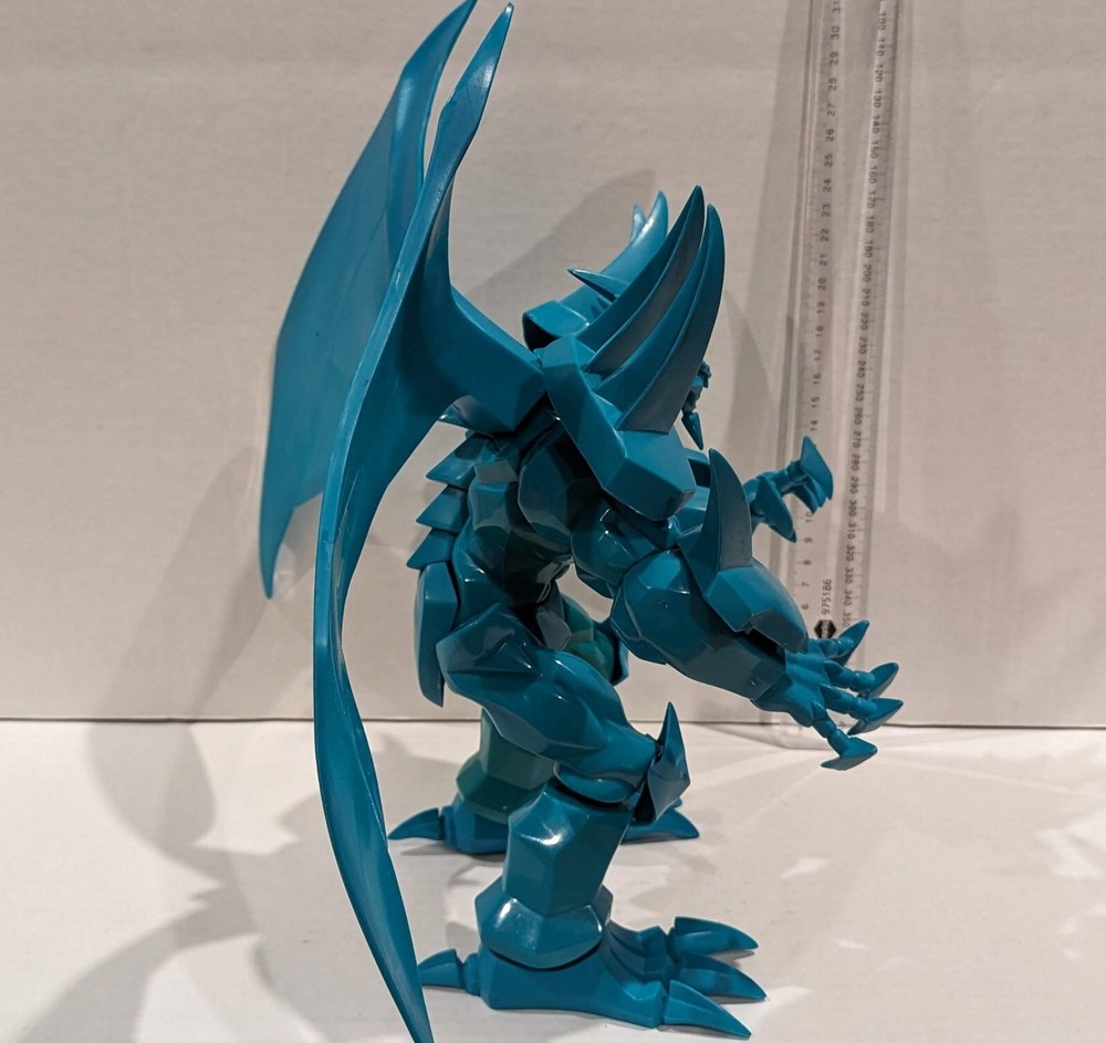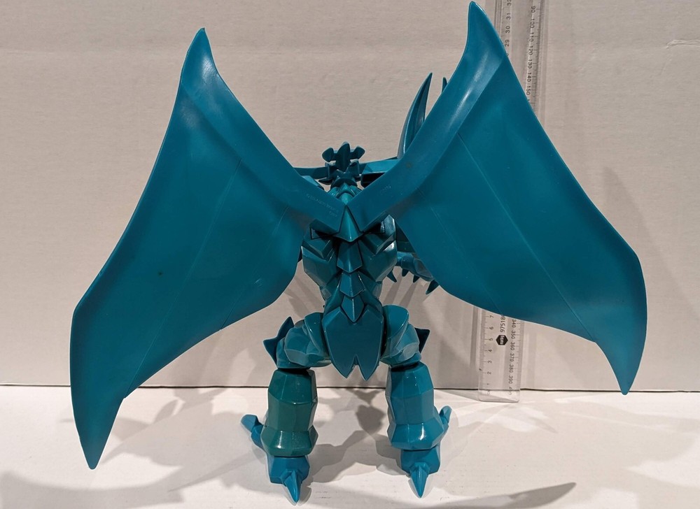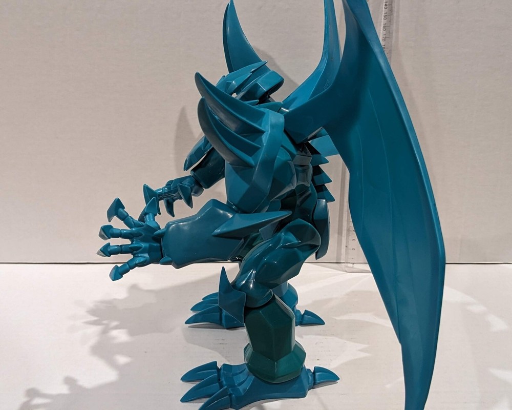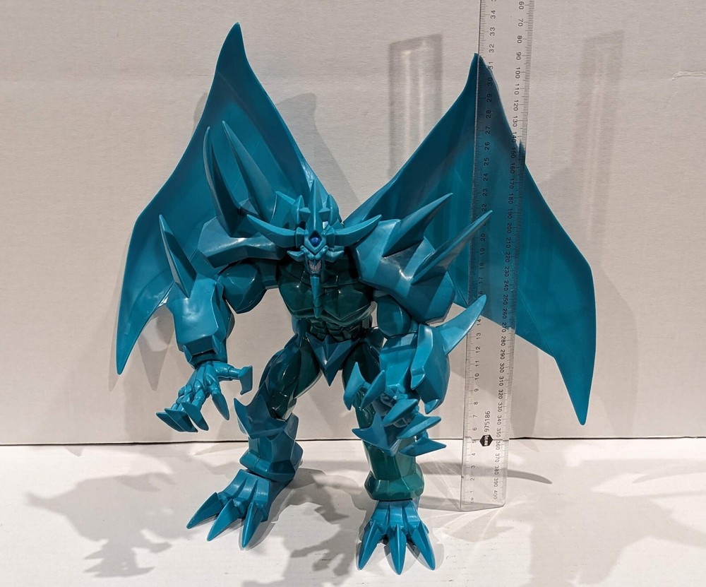 For sale is a pre-built Yu-Gi-Oh! model of Obelisk the Tormentor produced by Mattel in the early 2000s. Figure is built from a model kit and is roughly 30/12" tall. Pieces are of solid plastic and are of high quality, compared to typical plastic models. Figure is complete containing all parts and comes with chrome-painted wings. Figure is in mostly good condition except for some stress marks on the wings, and some discolouration on the chest and leg - please inspect photos for details. Paint is still vibrant and figure has been kept in dust-free environment. Please do not hesitate to contact for any questions or for more photos. I have more items listed and am happy to offer discounts for multiple items bought in a single purchase. I can also combine postage.