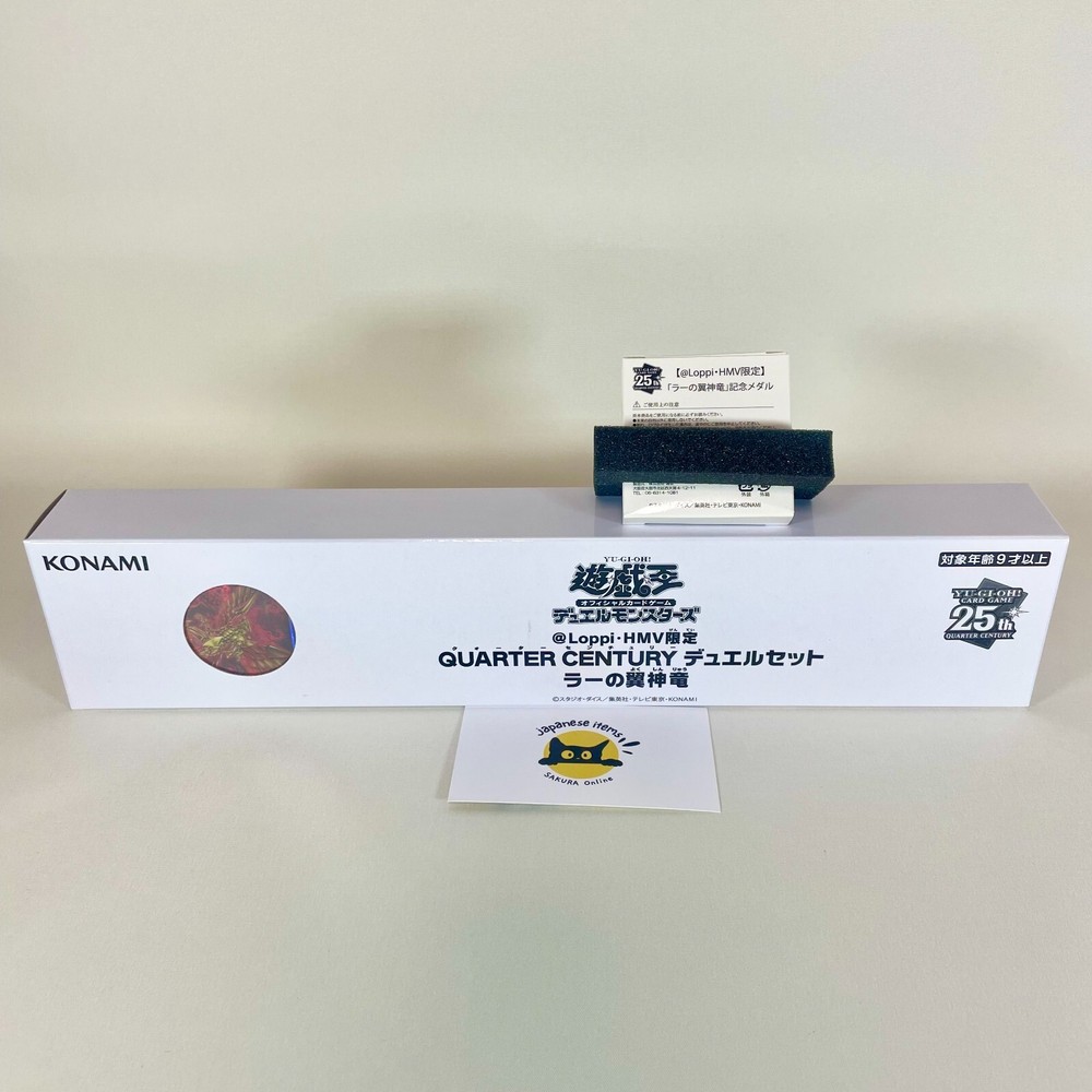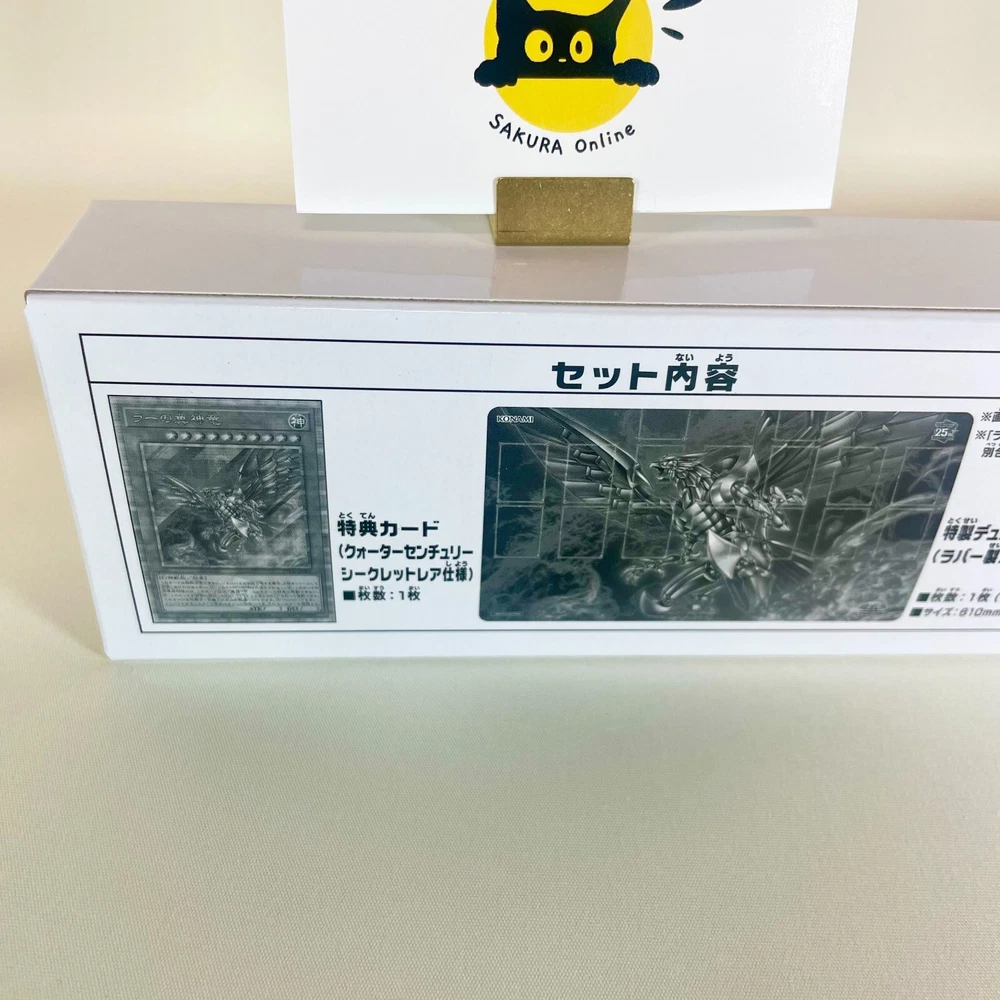 Description Title: Yugioh OCG Quarter Century Duel Set - The Winged Dragon of Ra Playmat + Medal + Card Description: Elevate your Yu-Gi-Oh! collection with the Yugioh OCG Quarter Century Duel Set featuring The Winged Dragon of Ra. This exclusive set includes: The Winged Dragon of Ra Card: A must-have for any Yu-Gi-Oh! fan, this card is a centerpiece of any collection. Exclusive Playmat: Enhance your dueling experience with a high-quality playmat featuring The Winged Dragon of Ra. Commemorative Medal: A beautifully crafted medal to celebrate the 25th anniversary of Yu-Gi-Oh!. Why Buy This Set? Limited Edition: Celebrate 25 years of Yu-Gi-Oh! with this special, limited edition set. High-Quality Materials: Each item in this set is made with premium materials to ensure durability and long-lasting enjoyment. Perfect Gift: Ideal for collectors and duelists, this set makes a perfect gift for any Yu-Gi-Oh! enthusiast. Key Features: Authentic Yugioh OCG product Includes The Winged Dragon of Ra card, exclusive playmat, and commemorative medal Perfect for collectors and competitive duelists Enhance your dueling experience with high-quality items Don’t miss out on this exclusive Yugioh OCG Quarter Century Duel Set. Add The Winged Dragon of Ra Playmat & Medal Card to your collection today and celebrate the legacy of Yu-Gi-Oh!. Tags: Yugioh, OCG, Quarter Century Duel Set, Winged Dragon of Ra, Playmat, Medal Card, Limited Edition, Collector's Item, Yu-Gi-Oh! Anniversary, Exclusive Set Shipping We will ship by DHL or FedEx or Japan Post. International Buyers ? Please Note: Import duties and taxes are not included in the item price or shipping cost. Please check with your country?s customs office to determine these additional costs prior to bidding or buying. Additionally, if the delivery address is in a remote area, there may be additional charges by FedEx or DHL. If such charges occur, you may be asked to pay an additional $15 to $20. Thank you for your understanding.