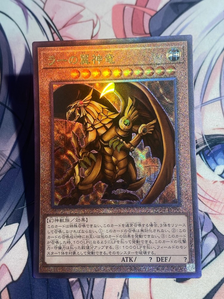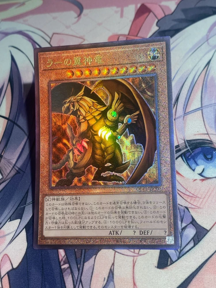 Welcome! QCCP-JP200 The Winged Dragon of Ra "ラーの翼神竜" The are printed at Japanese and imported from Japan, and in near mint condition. Please feel free to message me for bargaining purchase multiple items listed or any other questions. Near Mint: A Near Mint card looks like it has never been played without sleeves. Small allowances can be made, but the card generally shows no wear. The border of NM card can have small white spots, but they must be very few and very small. When the card is inspected under bright daylight, the surface must generally appear clean. It can have a few minor spots, but scratches can never be allowed for NM cards. Generally a Near Mint card is in a condition that would make it considered unmarked if played in an unsleeved deck. (Not recommended!) As the Mint grade is often not used for cards of newer expansions, Near Mint usually means Near Mint or better (equivalent to the American NM/M grade).