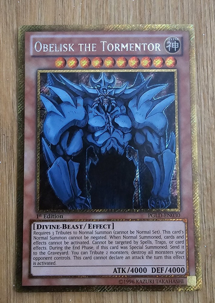 YuGiOh Obelisk the Tormentor PGLD-EN030 Gold Secret Rare 1st Edition MT/NM Sent in sleeve and toploader...