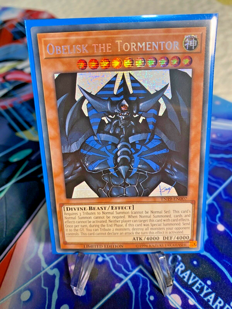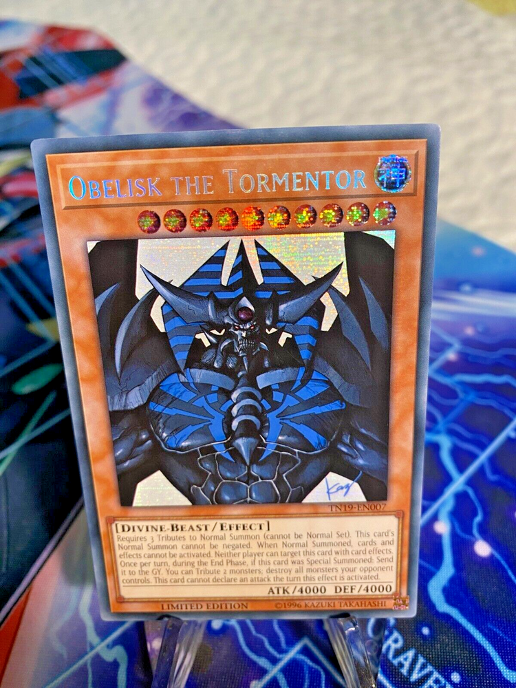 This Yu-Gi-Oh! card is a must-have for collectors—Obelisk the Tormentor in Prismatic Secret Rare looks stunning! The limited-edition promo from the 2019 tin is in perfect condition, making it a rare and valuable addition to any deck. Super happy with this purchase!