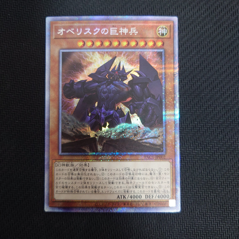 Obelisk the Tormentor Description About This Items PAC1-JP002 Prismatic Secret Rare PRISMATIC ART COLLECTION (2021) Grade Near Mint Appearance Beautiful. Please check the photos for details. Packing The card will ship them protected in a double sleeve & sealed in a card loader. Please refer to the end of the published photos. Shipping All shipments will be sent by Japan Post International Mail. If you wish to track your order, please make sure to select [Expedited Shipping] in the Shipping Policy. Shipping is only available to the address registered in eBay. If you want us to send another address, please change your address on eBay and then place an order. Shipping is available from Monday to Friday. Weekends are not available because freight (shipping) companies are closed. We do not mark merchandise values below value or mark items as ?gifts? ? Japan, US and International government regulations prohibit such behavior. For warranty claims for merchandise damaged during shipping, a ?Damage Declaration Form? must be submitted. Please submit the delivery label and tracking number to the delivery company for application. (Photos of the damaged goods, condition of the packing materials, appearance at the time of delivery, etc...) If your address is in the remote areas defined by the freight (shipping) company, please pay the additional shipping fees with PayPal. About Importer's Obligation Import duties, taxes, and charges are not included in the item price or shipping cost. These charges are the buyer's responsibility. Please check with your country's customs office to determine what these additional costs will be prior to bidding or buying. Thank you for your understanding.