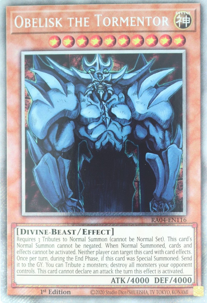 This YuGiOh Obelisk the Tormentor card is absolutely stunning! The Platinum Secret Rare finish makes it shine, and the 1st Edition stamp adds serious collector value. The detail pops, and it arrived in perfect condition. A must-have for any serious YuGiOh fan or collector!