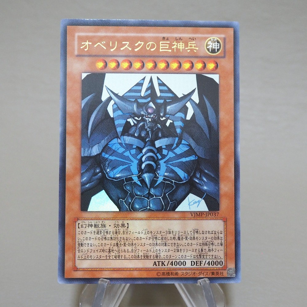 Yu-Gi-Oh Obelisk the Tormentor Ultra Rare VJMP-JP037 MINT-NM Japanese k035 Description Condition : MINT~ Near MINT (Please see photo) 【 MINT > Near MINT >Excellent >Very Good>Good>Poor】 Include : Obelisk the Tormentor Edition : VJMP-JP037 Rarity : Ultra Rare Delivery ★[More Than Total $80+] Free Shipping★ By Japan Post with Tracking Number. Shipping Fee is a flat rate of $6. Free conbined shipping for 2 or more!! International Buyers - Please Note: Import duties, taxes, and charges are not included in the item price or shipping cost. These charges are the buyer's responsibility. Please check with your country's customs office to determine what these additional costs will be prior to bidding or buying.