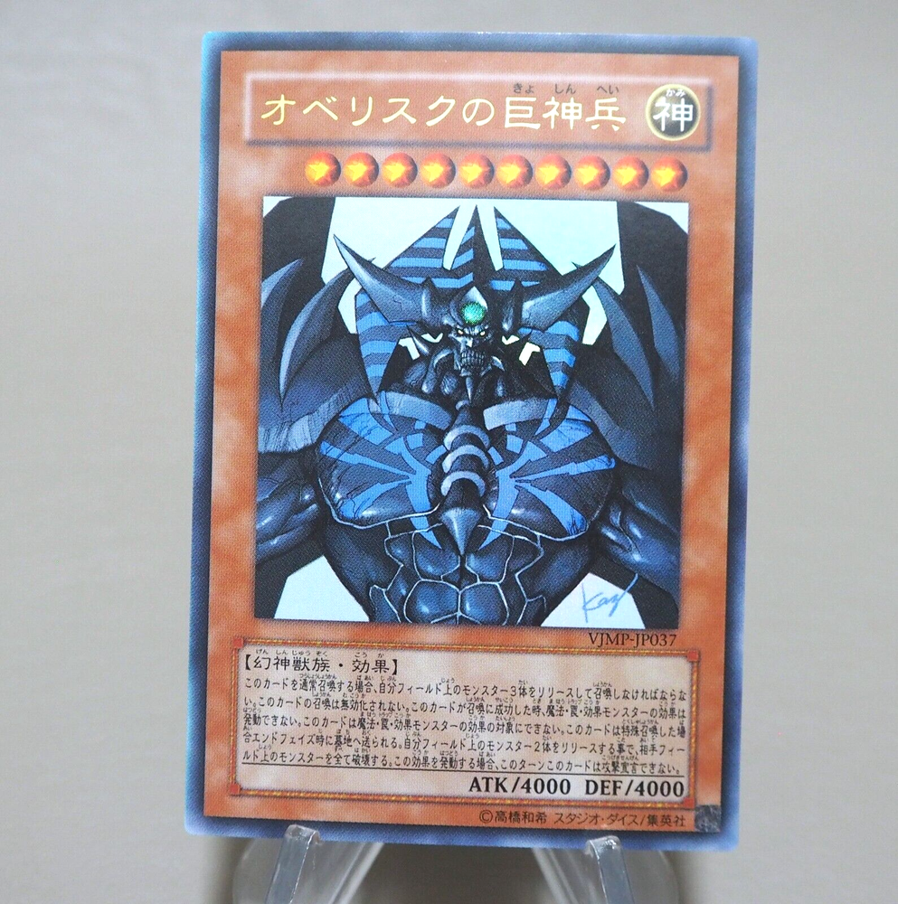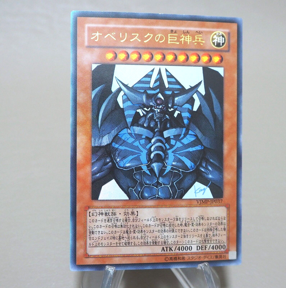 Yu-Gi-Oh Obelisk the Tormentor VJMP-JP037 Ultra 2008 NM-EX Japanese n154 Description Condition : Near MINT~Excellent (Please see photo) 【MINT> Near MINT>Excellent >Very Good>Good>Poor】 Include : Obelisk the Tormentor Edition : VJMP-JP037 Rarity : Ultra Rare Delivery ★[More Than Total $80+] Free Shipping★ By Japan Post with Tracking Number. Shipping Fee is a flat rate of $6. Free conbined shipping for 2 or more!! International Buyers - Please Note: Import duties, taxes, and charges are not included in the item price or shipping cost. These charges are the buyer's responsibility. Please check with your country's customs office to determine what these additional costs will be prior to bidding or buying.