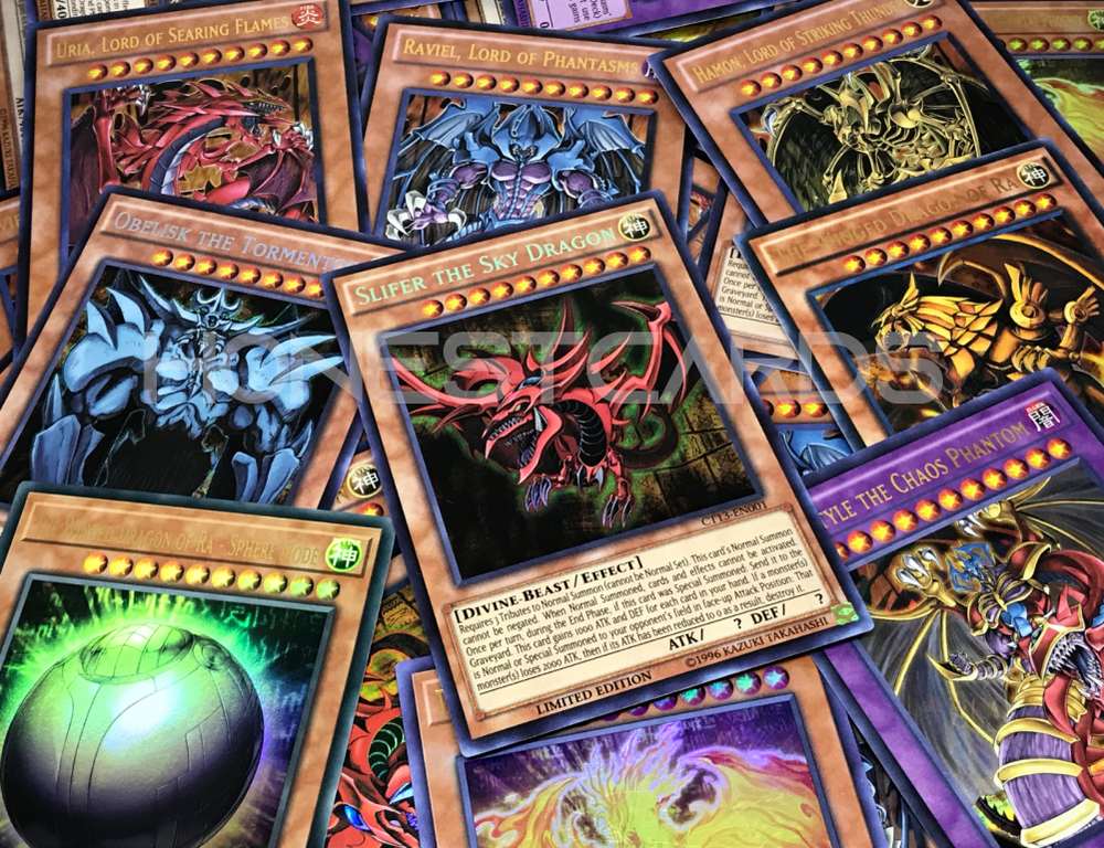 Hello!!! I am a Male Yugioh & Magic Collector & New Ebay Seller!!! I aim for 100% Customer Satisfaction so please!!! Message me about an item if you are not completely Satisfied with it. Below is the featured item if you have any questions please Message me!!! Happy Bidding!!! As a Bonus for buying my auction you will Recieve a Free Holo Card from my vast collection. It can be Super Rare, Ultra Rare, or Secret Rare or even GHOST Rare!!! Please Allow me the Set Handling time before your item will be shipped! It may take the full handling time set Thank You!!! Hello, Item for sale is: You will receive: 4 Egyptian God Cards/Sacred Beasts in Secret Rare/Ultra Rare Holographic Foil from the Card List 5 Bonus! FREE! Yu-Gi-Oh Cards! 1 Common Yu-Gi-Oh! Card 1 Silver Lettered Rare Yu-Gi-Oh! Card 2 Gold Lettered Ultra Rare Holographic Yu-Gi-Oh! Card 1 Silver Lettered Secret Rare Holographic Yu-Gi-Oh! Cards Egyptian God Cards & Sacred Beast Card List: Slifer the Sky Dragon Obelisk the Tormentor The Winged Dragon of Ra The Winged Dragon of Ra - Immortal Phoenix The Winged Dragon of Ra- Sphere Mode Uria, Lord of Searing Flames Raviel, Lord of Phantasms Hamon, Lord of Striking Thunder Armityle, the Chaos Phantom Armityle The Chaos Phantom - Phantom of Fury