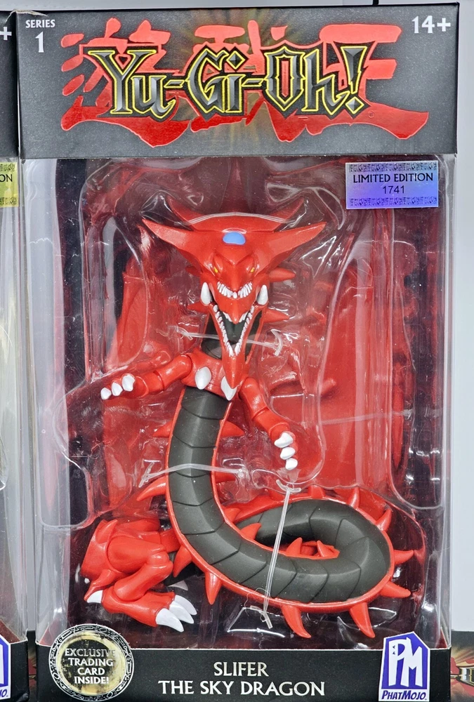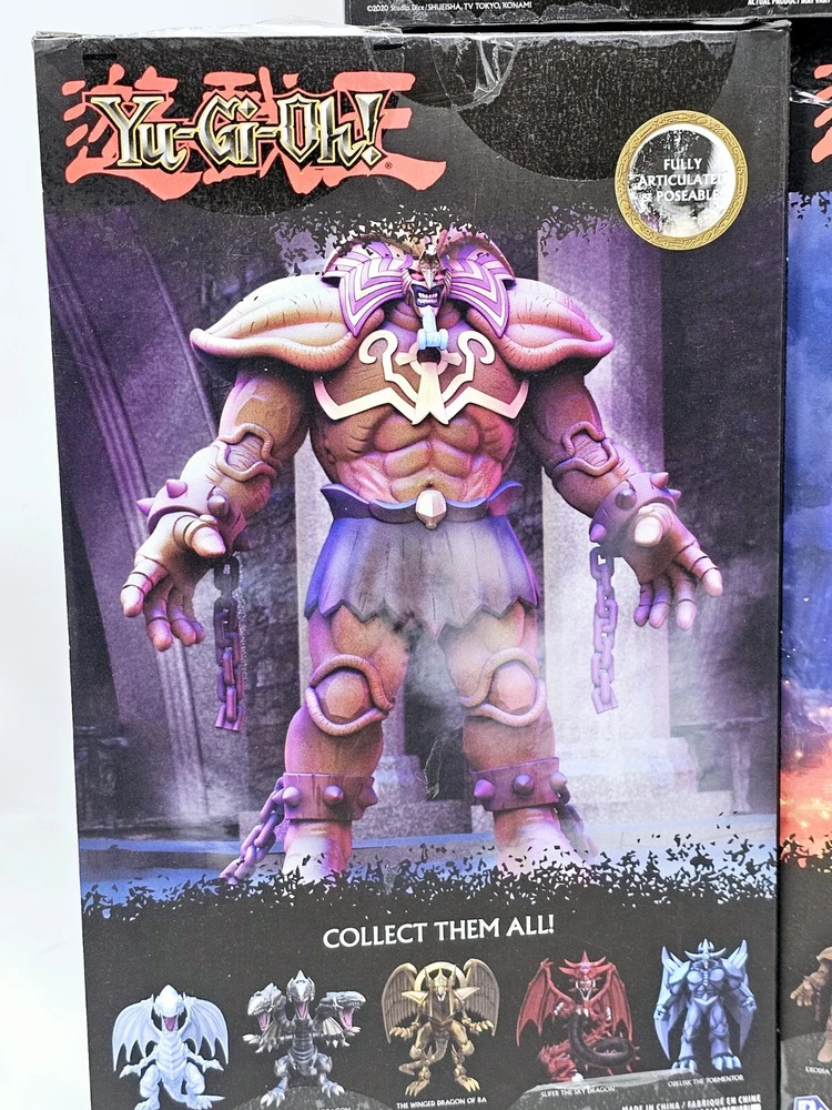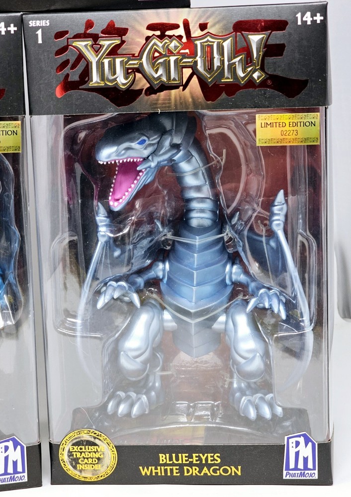 Boxes in VG condition, usual shelfwear. Worst I seen was a small tear on one corner of Slifer's box. Please review pictures before purchasing to better understand the condition of the items. The Yu-Gi-Oh! PhatMojo Series 1 Exodia Slifer Ra Obelisk Exclusive Cards Sealed Sets consist of 5 units of exclusive cards featuring iconic characters and creatures from the Yu-Gi-Oh! TV show and movie. The set includes characters like Obelisk the Tormentor, Blue Eyes White Dragon, The Winged Dragon of Ra, Slifer the Sky Dragon, and Exodia the Forbidden One, all standing at 7 inches tall. These cards are part of an anime and manga-themed collection manufactured in 2020 and are perfect for fans of the Yu-Gi-Oh! franchise looking to add unique and collectible items to their collection.