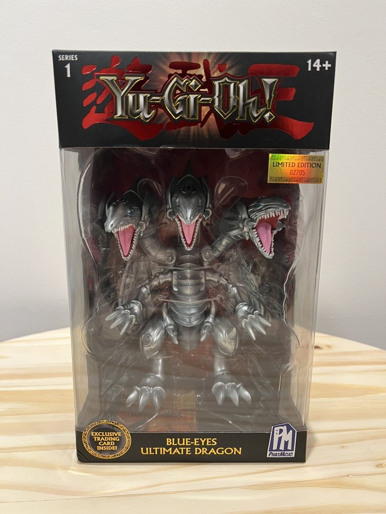 The Yu-Gi-Oh PhatMojo Series 1 set includes 6 action figures of iconic characters like Blue-Eyes White Dragon and Exodia The Forbidden One. Each figure stands 7 inches tall, made of plastic, and comes in original boxed packaging. This limited edition exclusive collection features popular monsters from the Yu-Gi-Oh! franchise, perfect for fans of the TV show and movie.