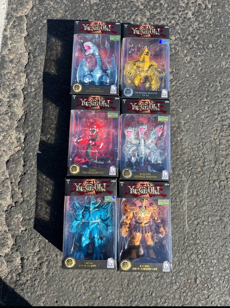 Enhance your Yu-Gi-Oh! collection with this set of six action figures from the PhatMojo Series 1. The set includes popular characters such as Obelisk the Tormentor, Blue-Eyes Ultimate Dragon, The Winged Dragon of Ra, Exodia the Forbidden One, Blue-Eyes White Dragon, and Slifer The Sky Dragon. The figures are made of plastic and come in their original packaging, making it a perfect addition for collectors. The set is an original licensed reproduction from the Yu-Gi-Oh! franchise and is designed for boxing enthusiasts. Each figure is multicolored and belongs to the Expanded Universe series. The packaging is unopened, making it a great gift for any Yu-Gi-Oh! fan.