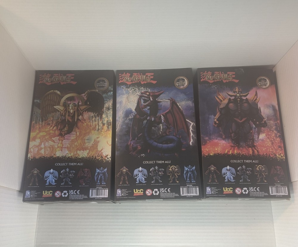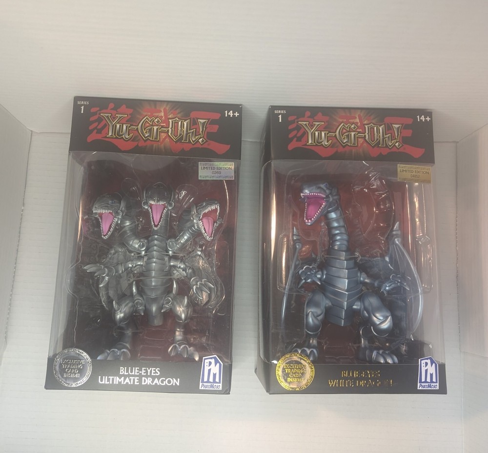 This limited edition set of Yu-Gi-Oh! action figures from the Phatmojo Series 1 is a must-have for any fan of the franchise. The set includes five figures featuring Egyptian gods and the Blue Eyes character, including Slifer the Sky Dragon, winged dragon of Ra, Exodia The Forbidden One, Blue Eyes Ultimate Dragon, and Obelisk The Tormentor. These 1:12 scale figures are made of durable plastic and were manufactured in 2023 in China. They are part of the Yugioh franchise and series, and are perfect for collectors or as a gift for a fan of the TV show or movie. Don't miss out on the chance to add these unique and highly detailed figures to your collection!